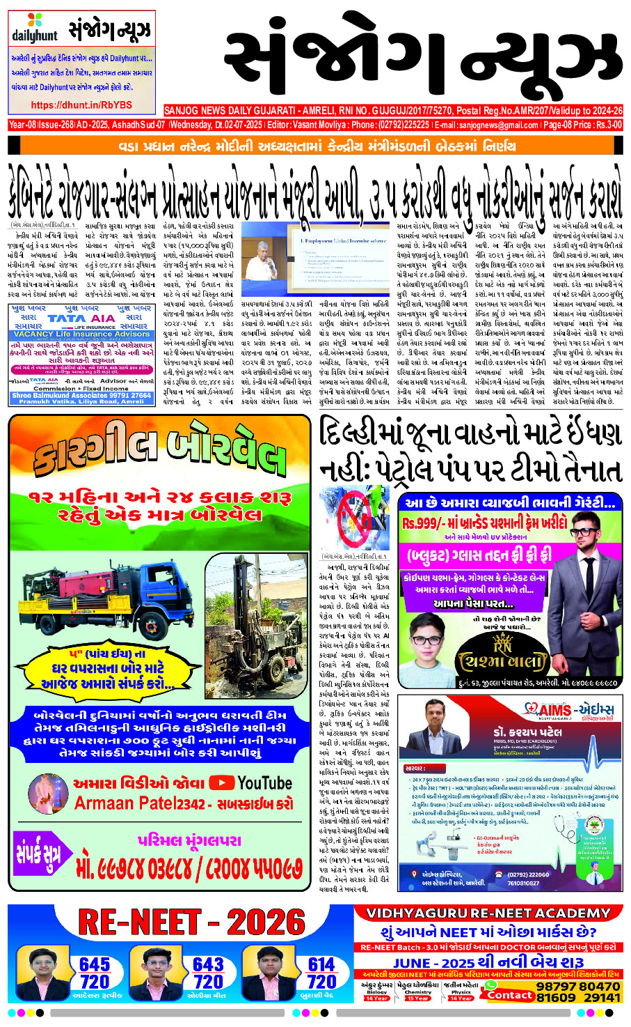 Home ઇપેપેર E – PAPER 02-07-2025 ઇપેપેર E – PAPER 02-07-2025 By Sanjog News - 02/07/2025 RELATED ARTICLESMORE FROM AUTHOR E-paper 08-02-2026 E-paper 06-02-2026 E – PAPER 05-02-2026 E- PAPER 04-02-2026 E- PAPER 03-02-2026 E-paper 02-02-2026 E- PAPER 01-02-2026 E – PAPER 31-01-2026 E- PAPER 30-01-2026 E-paper 29-01-2026 E-paper 28-01-2026 E – PAPER 26-01-2026 દીવના વણાકબારા રાયટીંગ અને મારામારીના કેસમાં નાસતા ફરતા કોડીનારના આરોપીને એલ.સી.બી.એ... 06/02/2026 અમરેલી જીલ્લા ભાજપ કાર્યાલય ખાતે ‘‘વીબી જીરામજી’’ કાર્યશાળા યોજાઈ 03/02/2026 નાસાને મંગળ પર જીવનના સંકેતો મળ્યા, બીચ હોવાના પુરાવા મળ્યા 03/02/2026 ભારે મોંઘવારી છતાં, મરિયમ નવાઝના ગરબા માટે ચાર કરોડ રૂપિયાનું બજેટ... 03/02/2026 અમરેલી વીએચપીએ અકસ્માત અટકાવવા રખડતી ગાયના ગળામાં રેડિયમ પટ્ટી લગાડી 03/02/2026 અમરેલીના બાળકે વડોદરામાં મહંતસ્વામીના જન્મોત્સવમાં કંઠસ્થ ૩૧૫ શ્લોક રજૂ કર્યા 05/02/2026 બીએસએફને જમીન આપવામાં આવી, છતાં વાડ કેમ અધૂરી છે, મમતા બેનર્જી 05/02/2026 રાજુલા તાલુકાના ભાક્ષીગામ ૩ ખાતે નવનિર્મિત પ્રાથમિક શાળાનું લોકાર્પણ 04/02/2026 જિલ્લામાં વર્ષ ર૦રપ-ર૬માં ૧૯,પર૦ વિદ્યાર્થિનીઓને શિષ્યવૃત્તિ ચુકવાઈ 08/02/2026 સેવન્થ ડે સ્કૂલ કેસમાં હાઇકોર્ટનું વલણ પ્રિન્સીપાલની નિવૃત્તિ સંસ્થાનો નિર્ણય, સરકારનો... 06/02/2026