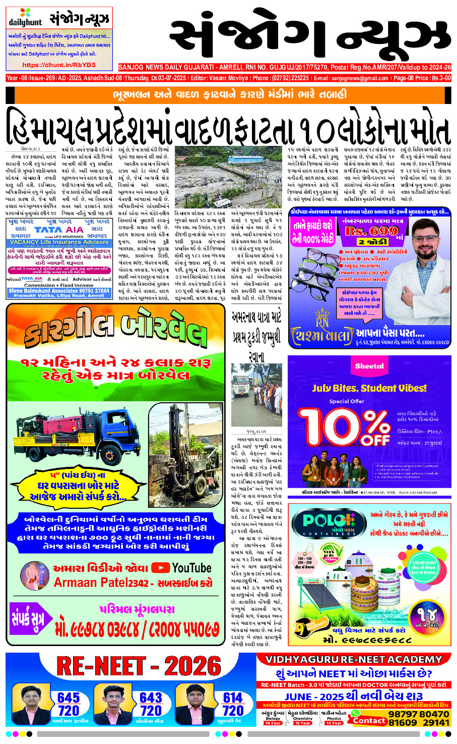 Home ઇપેપેર E- PAPER 03-07-2025 ઇપેપેર E- PAPER 03-07-2025 By Sanjog News - 03/07/2025 RELATED ARTICLESMORE FROM AUTHOR E-paper 17-02-2026 E- PAPER 16-02-2026 E-paper 15-02-2026 E- PAPER 14-02-2026 E- PAPER 13-02-2026 E-paper 12-02-2026 E- PAPER 11-02-2026 E – PAPER 10-02-2026 E-paper 09-02-2026 E-paper 08-02-2026 E-paper 06-02-2026 E – PAPER 05-02-2026 ચાલુ મેચ દરમિયાન અંધાધૂંધ ગોળીબાર, ૩ લોકોના મોત, ૩ ઈજાગ્રસ્ત 17/02/2026 મોટી કુંકાવાવ ખાતે વિવિધ વિકાસ કામોનું રાજયમંત્રીના હસ્તે લોકાર્પણ 14/02/2026 ભારત હવે આત્મવિશ્વાસપૂર્વક વૈશ્વીક ભાગીદારીમાં પ્રવેશ કરી રહ્યું છે,વિદેશ મંત્રી 17/02/2026 અમરેલીના લાઠી રોડ પર રહેતા વિપ્ર દંપતિ સાથે લાખો રૂપિયાની ઓનલાઈન... 11/02/2026 કમાણી સાયન્સ કોલેજમાં વિદ્યાર્થીઓને કેન્દ્રીય બજેટની સકારાત્મક અસર વિશે માહિતી અપાઇ 12/02/2026 લાલ કિલ્લા નજીક થયેલા ઘાતક હુમલામાં પાકિસ્તાની આતંકવાદી સંગઠન જૈશ-એ-મોહમ્મદનો સમાવેશ... 12/02/2026 બાંગ્લાદેશમાં તારિક રહેમાન ૧૭ ફેબ્રુઆરીએ શપથ લેશે, ભારતને પણ આમંત્રણ આપવામાં... 15/02/2026 કોંગ્રેસના કાર્યકરોએ વધતા ગુના દર અને કાયદો અને વ્યવસ્થા અંગે પોલીસ... 14/02/2026 ગુજરાત વિધાનસભામાં બજેટ સત્રનો પ્રારંભ પ્રથમ દિવસે જ રાજકીય માહોલ ગરમાયો 16/02/2026 સેન્સેક્સ ૧૭૪ પોઈન્ટ ઉછળ્યો, નિફ્ટીમાં પણ વધારો થયો, રોકાણકારોએ ૧ લાખ... 17/02/2026