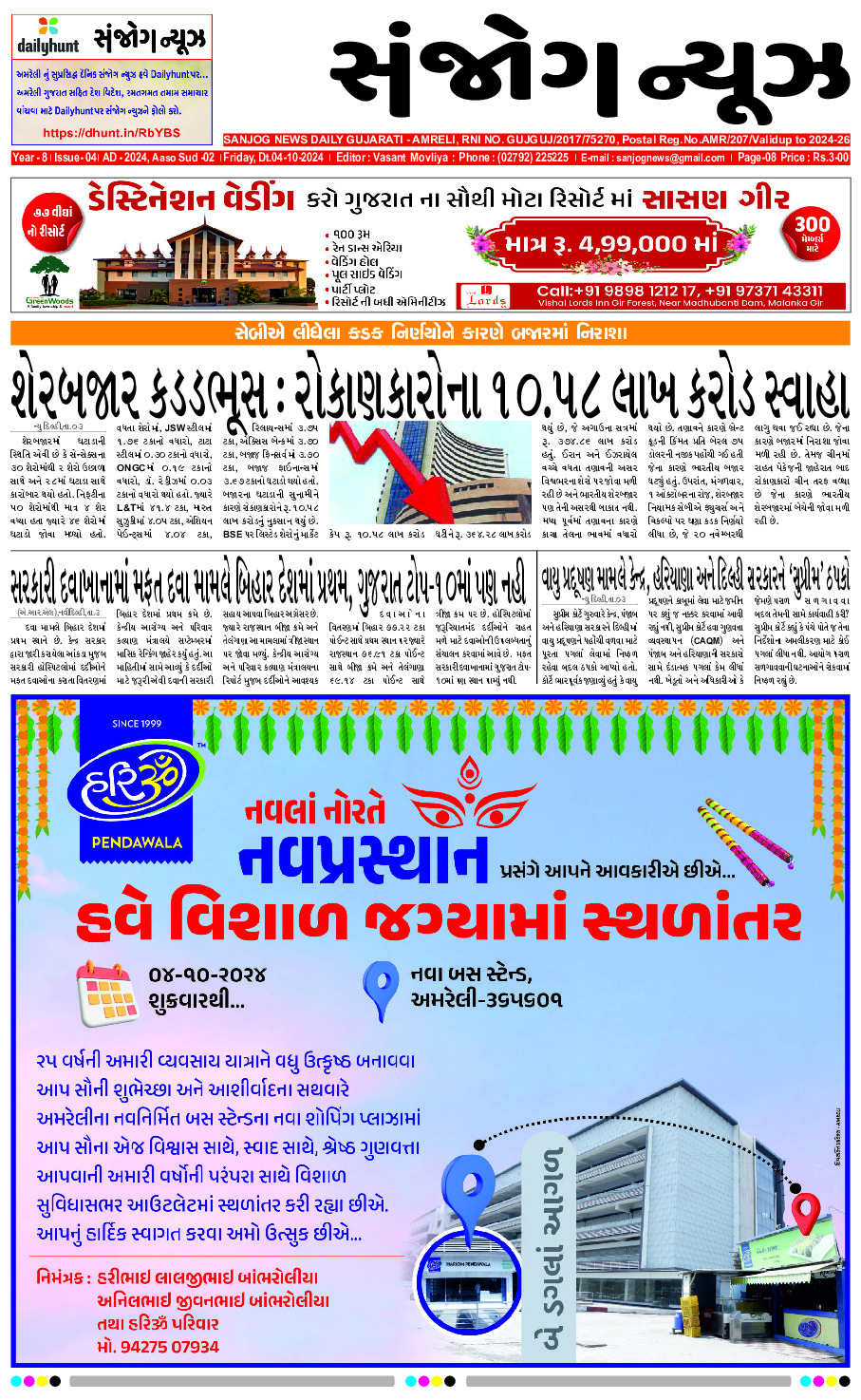 Home ઇપેપેર E-paper 04-10-2024 ઇપેપેર E-paper 04-10-2024 By Sanjog News - 04/10/2024 RELATED ARTICLESMORE FROM AUTHOR E- PAPER 27-02-2026 E-paper 26-02-2026 E- PAPER 25-02-2026 E -PAPER 24-02-2026 E-paper 22-02-2026 E- PAPER 21-02-2026 E – PAPER 20-02-2026 E- PAPER 19-02-2026 E-PAPER 18-02-2026 E-paper 17-02-2026 E- PAPER 16-02-2026 E-paper 15-02-2026 સાઉથ સ્ટાર સાઈ પલ્લવી ફિલ્મફેર એવોર્ડ્સમાં હાજરી આપવા માટે કેરળ પહોંચી... 24/02/2026 ભારતીયો ચાઇનીઝ મોબાઇલ ફોનથી નિરાશ થયા છે, વેચાણમાં પહેલી વાર ઘટાડો... 26/02/2026 જાફરાબાદના ચિત્રાસર ગામે કુવામાં ખાબકેલા દીપડાના બચ્ચાનું સફળ રેસ્ક્યુ 21/02/2026 કુંકાવાવમાં G-કાર્ડ કઢાવવામાં પેન્શનરોને પડતી હાલાકી અંગે કલેક્ટરને રજૂઆત 26/02/2026 અમેરિકન રાષ્ટ્રપતિ ટ્રમ્પે પીએમ નરેન્દ્ર મોદીને સ્માર્ટ પ્રધાનમંત્રી ગણાવ્યા,અમારો ફાયદો ઉઠાવવામાં... 21/02/2026 સુરતમાં સામૂહિક આપઘાતની હચમચાવી નાંખે તેવી ઘટનાઃ વ્યાજખોરના ત્રાસથી હસતા-રમતા પરિવાર... 25/02/2026 ગુજરાતના તાપમાનમાં વધારો,મિશ્ર ઋતુનો અહેસાસ થઇ રહ્યો છે 25/02/2026 એઆઇ સમિટ દરમિયાન યુવા કોંગ્રેસનો હોબાળો સુનિયોજિત ષડયંત્રનો ભાગ, અનેક રાજ્યો... 24/02/2026 જિલ્લામાંથી ૮ લીટર દેશી દારૂ પકડાયો 23/02/2026 જૂની ઓફર હજુ પણ યથાવત છે,૧૦૦ ધારાસભ્યો લાવો, મુખ્યમંત્રી બનો,અખિલેશ 23/02/2026