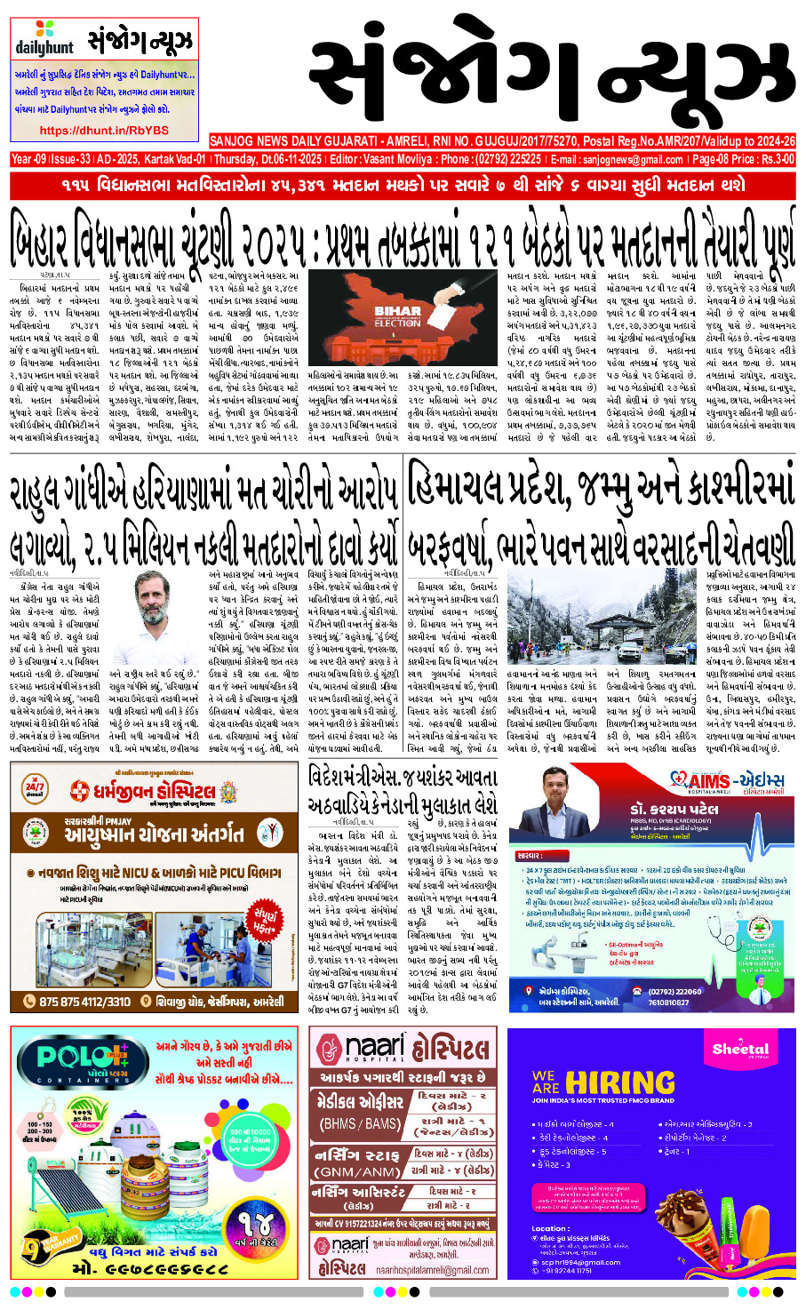 Home ઇપેપેર E- PAPER 06-11-2025 ઇપેપેર E- PAPER 06-11-2025 By Sanjog News - 06/11/2025 RELATED ARTICLESMORE FROM AUTHOR E- PAPER 14-11-2025 E- PAPER 13-11-2025 E- PAPER 12-11-2025 E-paper 11-11-2025 E-paper 10-11–2025 E – PAPER 09-11-2025 E-paper 08-11-2025 E-paper 07-11-2025 E-paper 05-11-2025 E- PAPER 04-11-2025 E-paper 03-11-2025 E-Paper 02-11-2025 રાજુલામાં ‘સંભારણુ’ શિર્ષક હેઠળ લોકસાહિત્યનો કાર્યક્રમ યોજાયોઃ કથા, કવિતા, ગઝલ અને... 11/11/2025 બાબર આઝમ પર સંકટના વાદળો છવાઈ ગયા છે, તેની કારકિર્દી ફક્ત... 07/11/2025 સ્થાનિક શેરબજારમાં ભારે ઘટાડા બાદ સુધારો થયો, સેન્સેક્સ ૯૫ પોઈન્ટ નીચે... 07/11/2025 રાજ્યમાં છેલ્લા ૧૧ વર્ષમાં ૧૫.૮૯ કરોડથી વધુ બાળકોની મફત આરોગ્ય તપાસઃ... 10/11/2025 સાવરકુંડલાની વી.ડી.કાણકીયા કોલેજમાં ‘વંદે માતરમ્’ના ૧૫૦ વર્ષની ઉજવણી કરાઈ 08/11/2025 ધોરાજીના જૂનાગઢ રોડ પર મોરબી-બાટવા રૂટની ST બસ પલટી: ૨૦ મુસાફરો... 10/11/2025 અર્જુન મોઢવાડિયાના અધ્યક્ષ સ્થાને સરદાર પટેલની જન્મજયંતિ નિમિત્તે ‘એકતાયાત્રા’ અંગે આયોજન... 08/11/2025 સા.કુંડલામાં કચરાના પ્રોસેસિંગ પ્લાન્ટનું મહેશ કસવાળાના હસ્તે ખાતમુહૂર્ત કરાયું 14/11/2025 એસ.ટી.ના કથળેલા વહીવટ સામે બગસરા તાલુકા સરપંચ એસો. પણ મેદાને 14/11/2025 રાજા ભૈયા સામે ચૂંટણી લડનારા સપા નેતા ગુલશન યાદવ સામે કાર્યવાહી;... 13/11/2025