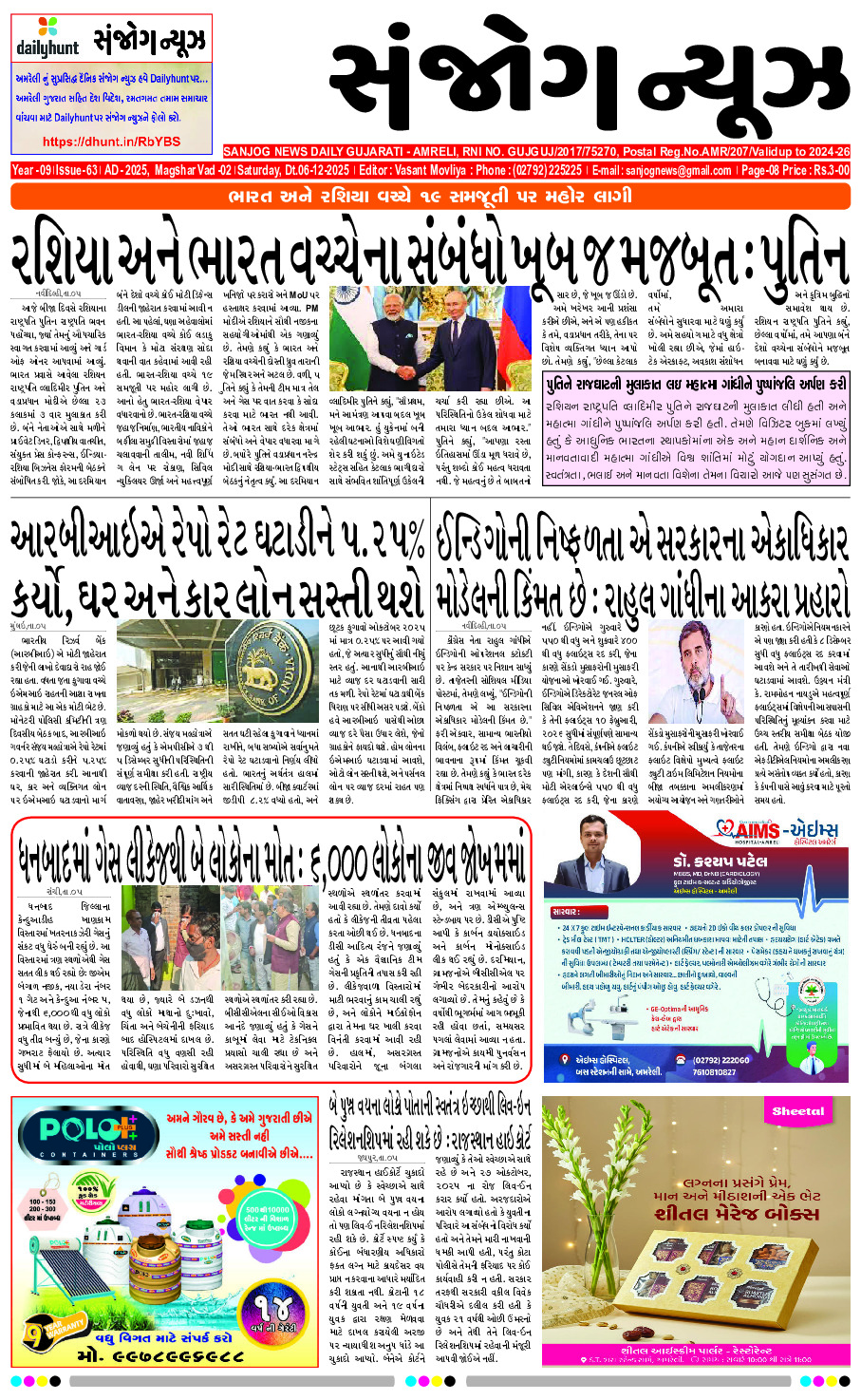 Home ઇપેપેર E-paper 06-12-2025 ઇપેપેર E-paper 06-12-2025 By Sanjog News - 06/12/2025 RELATED ARTICLESMORE FROM AUTHOR E – PAPER 20-01-2026 E-paper 19-01-2026 E- PAPER 16-01-2026 E- PAPER 14-01-2026 E-paper 13-01-2026 E- PAPER 12-01-2026 E-paper 11-01-2026 E-paper 10-01-2026 E -PAPER 09-01-2026 E- PAPER 08-01-2026 E-paper 07-01-2026 E-paper 06-01-2026 પ્રજાસત્તાક દિવસ નિમિત્તે પરેડ જાવા માટે ૧૦,૦૦૦ ખાસ મહેમાનોને આમંત્રણ આપવામાં... 20/01/2026 કોડીનારની સોમનાથ ઇન્ટરનેશનલ સ્કૂલમાં નિઃશુલ્ક દંત પરીક્ષણ કેમ્પ યોજાયોઃ વિદ્યાર્થીઓ અને... 19/01/2026 અખિલેશ યાદવના ભાઈ પ્રતીક યાદવે તેમની પત્ની અને ભાજપ નેતા અપર્ણા... 19/01/2026 બંને નેતાઓ સિદ્ધારમૈયા સહિત ૧૪૦ ધારાસભ્યોનું સમર્થન કરીને એક નિષ્કર્ષ પર... 20/01/2026 દિલ્હી અને સમગ્ર ઉત્તર ભારતમાં કડકડતી શિયાળાથી થોડી રાહત મળી રહી... 19/01/2026 રાજુલાના જૂની કાતર રોડ પર ટ્રકની જોરદાર ટક્કરથી બાઈક સવારનું ઘટનાસ્થળે... 15/01/2026 અમરેલીના માલવણ ગ્રા.પં.ના નવા ભવનનું રાજ્યમંત્રી કૌશિક વેકરીયાના હસ્તે ખાતમુહૂર્ત 19/01/2026 શેરબજારમાં ઉથલપાથલ, સેન્સેક્સ ૧૦૬૬ પોઈન્ટ અને નિફ્ટી ૩૫૩ પોઈન્ટ ઘટ્યો 20/01/2026 અમરેલીના લીલીયા રોડ પર બોક્સ બાંધકામને લઈ જાહેરનામુ 20/01/2026 ભાવનગર યુનિવર્સિટીમાં નશાના નિશાન,ગાંજા, ગોગો પેપર અને દારૂની બોટલો મળી આવતા... 20/01/2026