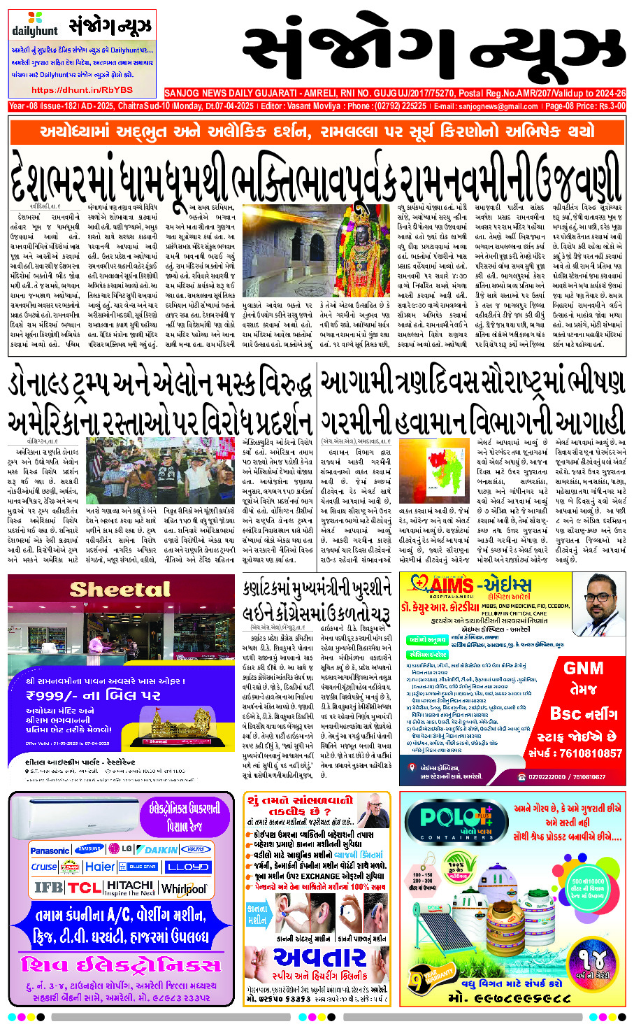 Home ઇપેપેર E-paper 07-04-2025 ઇપેપેર E-paper 07-04-2025 By Sanjog News - 07/04/2025 RELATED ARTICLESMORE FROM AUTHOR E-paper 28-02-2026 E- PAPER 27-02-2026 E-paper 26-02-2026 E- PAPER 25-02-2026 E -PAPER 24-02-2026 E-paper 22-02-2026 E- PAPER 21-02-2026 E – PAPER 20-02-2026 E- PAPER 19-02-2026 E-PAPER 18-02-2026 E-paper 17-02-2026 E- PAPER 16-02-2026 સંયુક્ત કિસાન મોરચો ભારત-અમેરિકા વેપાર કરાર સામે મોટી તૈયારીઓ કરીને સરકારનો... 27/02/2026 ગોંડલમાં સેવા કર્મીઓ દ્વારા નશબંધી કરવા આવતી મહિલાનાં બાળકોને ઘોડીયા અને... 23/02/2026 પટણામાં લગ્નના રિસેપ્શનમાં ગોળીબાર; ગુનેગારોએ બે ભાઈઓને ઘટનાસ્થળે ગોળી મારી 23/02/2026 અમરેલીમાં કાનજી ભૂટા બારોટ ર્બોડિંગનું મોરારીબાપુના હસ્તે લોકાર્પણ 24/02/2026 બિહારની જેમ તમિલનાડુમાં પણ કોંગ્રેસ અડગ છે, જ્યાં ડીએમકે સાથે સીટ... 24/02/2026 ડિજિટલ પ્લેટફોર્મ્સે ઓનલાઈન સામગ્રી અને બાળકોની સલામતી માટે જવાબદારી લેવી જાઈએ,આઇટી... 26/02/2026 કર્ણાટકમાં સ્વયંઘોષિત ધર્મગુરુએ નિર્દોષ છોકરી પર જાતીય હુમલો કર્યો, પોસ્કો કાયદા... 27/02/2026 બસપા ધારાસભ્ય અને તેમના નજીકના સહયોગીઓના ઘરેથી ૧૦ કરોડ રૂપિયા રોકડા... 26/02/2026 સુરતમાં ખાનગી કંપનીના કર્મચારીઓનો ઉગ્ર વિરોધ, તોડફોડ અને આગચંપી, પોલીસે ટીયરગેસના... 26/02/2026 બોર્ડની પરીક્ષાનો પ્રારંભ ધો.૧૦ના વિદ્યાર્થીઓને ગુલાબનું ફુલ આપી આવકારાયા,મોં મીઠુ કરાવાયું 26/02/2026