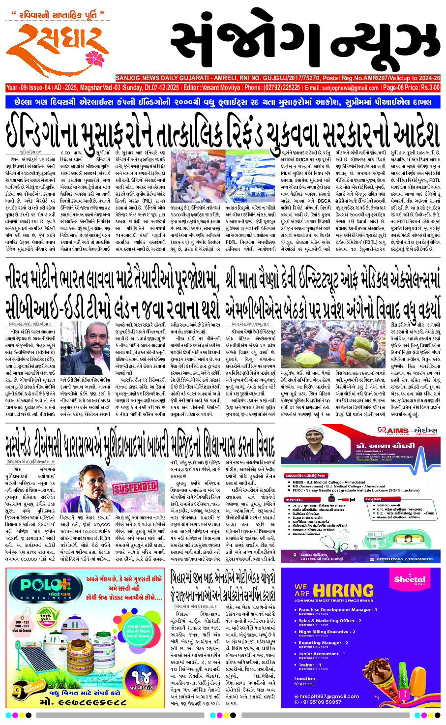 Home ઇપેપેર E- PAPER 07-12-2025 ઇપેપેર E- PAPER 07-12-2025 By Sanjog News - 07/12/2025 RELATED ARTICLESMORE FROM AUTHOR E- PAPER 14-01-2026 E-paper 13-01-2026 E- PAPER 12-01-2026 E-paper 11-01-2026 E-paper 10-01-2026 E -PAPER 09-01-2026 E- PAPER 08-01-2026 E-paper 07-01-2026 E-paper 06-01-2026 E-paper 05-01-2026 E-PAPER 04-01-2026 E-paper 03-01-2026 રાહુલ ગાંધી ટૂંક સમયમાં રામ મંદિરની મુલાકાત લેશે,બારાબંકીના સાંસદ તનુજ પુનિયા 13/01/2026 લીલીયાના ગુંદરણ ગામે સમસ્ત કોળી અને ઠાકોર સમાજની મિટિંગ યોજાઈ 11/01/2026 ઉત્તરાયણ પૂર્વે અમદાવાદમાં પ્રવાસીઓની ભીડ, ફ્લાઈટ ભાડામાં ૧૦થી ૩૦ હજારનો વધારો 11/01/2026 જાફરાબાદના નાગેશ્રી ખાતે મહેતા પરિવાર દ્વારા ગુરૂદેવ યોગીરાજની પુણ્યતિથિ ઉજવાઈ 13/01/2026 એનઆઇએ હવે બાંગ્લાદેશી ઘૂસણખોરીની તપાસ કરશે, જેમાં ભારતના સરહદી રાજ્યોમાંથી કાર્યરત... 13/01/2026 ચલાલાની હરિબા મહિલા કોલેજનું બી.કોમનું ૧૦૦ ટકા પરિણામ 10/01/2026 “શું અમિત શાહ રાજસ્થાનની જનતાની માફી માંગશે?” ગૃહમંત્રી અશોક ગેહલોતે તીક્ષ્ણ... 11/01/2026 અમારા કૌટુંબિક તણાવ હવે ઉકેલાઈ ગયા છે,નાયબ મુખ્યમંત્રી અજિત પવાર 09/01/2026 બગસરાના કે.જી. ધાણક વિદ્યામંદિરમાં ‘ઉડાન ફર્સ્ટ-ર૦ર૬’ કાર્યક્રમ યોજાયો 11/01/2026 ગઝનવીથી માંડીને ઔરંગઝેબ… ઈતિહાસમાં દફન થઈ ગયા, સોમનાથ ત્યાં જ ઊભું... 12/01/2026