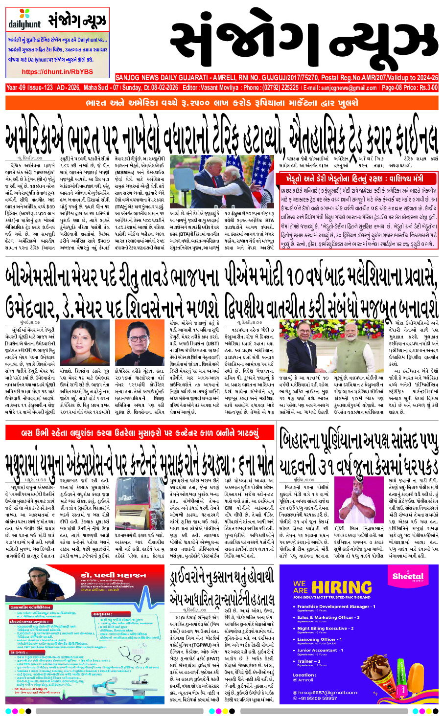 Home ઇપેપેર E-paper 08-02-2026 ઇપેપેર E-paper 08-02-2026 By Sanjog News - 08/02/2026 RELATED ARTICLESMORE FROM AUTHOR E – PAPER 10-02-2026 E-paper 09-02-2026 E-paper 06-02-2026 E – PAPER 05-02-2026 E- PAPER 04-02-2026 E- PAPER 03-02-2026 E-paper 02-02-2026 E- PAPER 01-02-2026 E – PAPER 31-01-2026 E- PAPER 30-01-2026 E-paper 29-01-2026 E-paper 28-01-2026 સલમાન ખાન અને સુભાષ ઘાઈ અને પ્રસૂન જાશી આરએસએસના એક કાર્યક્રમમાં... 08/02/2026 વિધાનસભા ચૂંટણી ૨૦૨૭ઃ કોંગ્રેસ ટિકિટના મુદ્દામાં ફસાયેલી, વરિષ્ઠ નેતાઓ માટે બેઠકો... 06/02/2026 ઉત્તર ભારતીયો ફક્ત હિન્દી જાણે છે અને અહીં પાણીપુરી વેચવા આવે છે,તમિલનાડુના... 05/02/2026 શેહબાઝ શરીફનો કાશ્મીર જુગાર ઉલટો પડ્યો, લંડનથી બ્રસેલ્સ સુધીના કાશ્મીરીઓએ પાકિસ્તાની... 06/02/2026 તેજ પ્રતાપ યાદવે પહેલી વાર પાંચ જયચંદના નામ જાહેર કરતાં કહ્યું,મારો... 09/02/2026 કેરિયાનાગસ શાળાની બે વિદ્યાર્થિનીઓ રાજ્ય કક્ષાએ પસંદગી પામતા મંત્રી કૌશિકભાઈ વેકરીયાએ... 08/02/2026 કોંગ્રેસ પ્રમુખ પ્રતાપ દુધાત સહિતના આગેવાનોએ સારહિ તપોવન આશ્રમની મુલાકાત લીધી 05/02/2026 ગુજરાત યુનિવર્સિટીના ગેસ્ટ હાઉસમાં યુવતીનો આપઘાત, બારીએ દુપટ્ટો બાંધી ગળેફાંસો ખાધો 07/02/2026 સાવરકુંડલામાં સ્વામિનારાયણ ગુરુકુળ દ્વારા ૩૪૪મો વિનામૂલ્યે નેત્ર નિદાન કેમ્પ યોજાયો 07/02/2026 અંકલેશ્વરમાં ૬૩ વર્ષીય ટ્યુશન સંચાલકની ધરપકડ, ૧૩ વર્ષીય વિદ્યાર્થિની પર દુષ્કર્મ,પોસ્કો... 08/02/2026