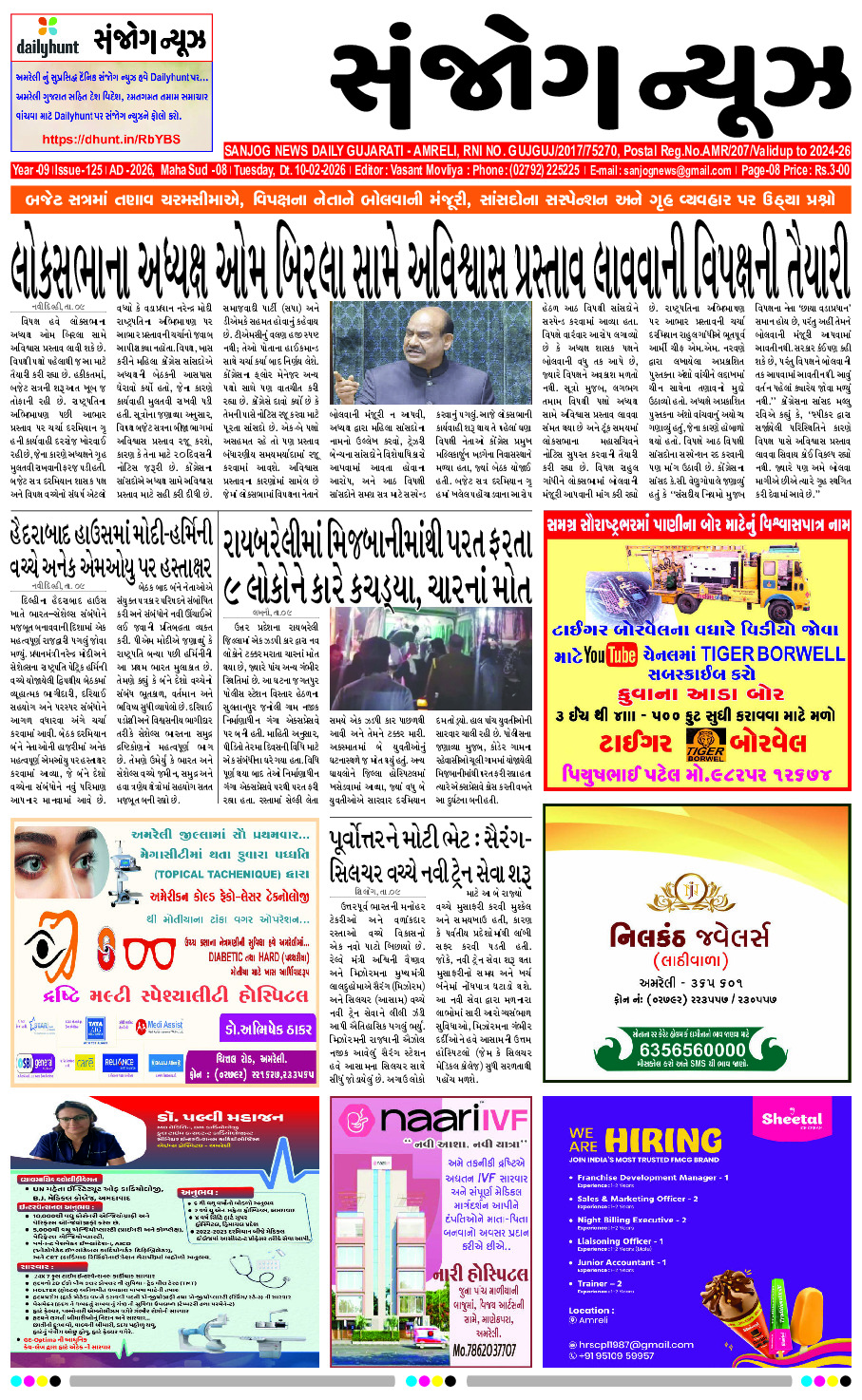 Home ઇપેપેર E – PAPER 10-02-2026 ઇપેપેર E – PAPER 10-02-2026 By Sanjog News - 10/02/2026 RELATED ARTICLESMORE FROM AUTHOR E-paper 09-02-2026 E-paper 08-02-2026 E-paper 06-02-2026 E – PAPER 05-02-2026 E- PAPER 04-02-2026 E- PAPER 03-02-2026 E-paper 02-02-2026 E- PAPER 01-02-2026 E – PAPER 31-01-2026 E- PAPER 30-01-2026 E-paper 29-01-2026 E-paper 28-01-2026 બારડોલીમાં માનવતા શરમાઈ, પ્રેમી પંખીડા ભાગી જતાં યુવકના પરિવારનું જાહેરમાં સરઘસ... 06/02/2026 રાહુલ ગાંધીની ટિકિટ પણ હજુ નક્કી નથી, ભલામણો અંગે હરક સિંહ... 09/02/2026 બગસરામાં પત્ની સાથે ઘરકામ બાબતે સામાન્ય બોલાચાલી થતા પતિએ ગળેફાંસો ખાધો 04/02/2026 ગોવિંદા ટૂંક સમયમાં મોટી જાહેરાત કરી શકે છે, અભિનેતાના મેનેજરે ખુલાસો... 05/02/2026 ૨૦ રૂપિયાની લાંચના આરોપમાં ૨૦ વર્ષની લડત, નિર્દોષ જાહેર થયા બાદ... 06/02/2026 દિલ્હી સહિત દેશના ઘણા ભાગોમાં સવારે ગાઢ ધુમ્મસ જાવા મળ્યું 04/02/2026 દામનગરના યુવાને ઉચ્ચ શિક્ષણ છોડી બીએપીએસ સંસ્થાનો ત્યાગાશ્રમ સ્વીકાર્યો 09/02/2026 અમરેલીમાં જાહેર રોડ પર ટ્રાફિકને અડચણરૂપ વાહન ઉભા રાખતા ચાલકો સામે... 05/02/2026 ક્રિકેટર રિંકુ સિંહનું ફેસબુક આઈડી હેક થયું, સાયબર છેતરપિંડી કરનારાઓએ મોનેટાઇઝેશન... 06/02/2026 વિપક્ષી સાંસદોનું વર્તન અત્યંત આક્રમક હતું અને તેમને પોતાના જ સાંસદોને... 10/02/2026