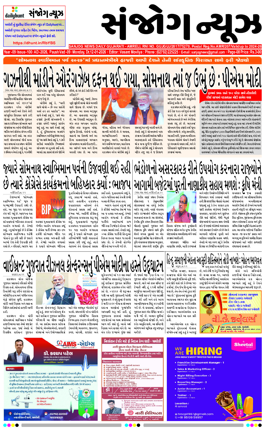 Home ઇપેપેર E- PAPER 12-01-2026 ઇપેપેર E- PAPER 12-01-2026 By Sanjog News - 12/01/2026 RELATED ARTICLESMORE FROM AUTHOR E-paper 11-01-2026 E-paper 10-01-2026 E -PAPER 09-01-2026 E- PAPER 08-01-2026 E-paper 07-01-2026 E-paper 06-01-2026 E-paper 05-01-2026 E-PAPER 04-01-2026 E-paper 03-01-2026 E- PAPER 02-01-2026 E- PAPER 01-01-2026 E-paper 31-12-2025 વિધાનસભા ચૂંટણીમાં પ્રચંડ વિજય મેળવ્યા પછી, ભાજપ રાજ્યભરમાં પોતાની ગ્રાસરુટ હાજરી... 05/01/2026 ફૈઝ-એ-ઇલાહીની મસ્જીદ પાસે બુલડોઝર કાર્યવાહી મુસ્લીમ સમુદાય પર દબાણ લાવવાનું કાવતરું,મલિક... 08/01/2026 હૈદરાબાદના કટ્ટામૈસંમ્મા દેવી મંદિરની સામે એક વ્યક્તિએ શૌચ કર્યું, વિસ્તારમાં તણાવ... 11/01/2026 પવાર પરિવારનો મેનિફેસ્ટો! શરદ પવાર અને અજિત પવારનો સંયુક્ત મેનિફેસ્ટો બહાર... 10/01/2026 મહેશ કસવાલાના પ્રયાસોથી લીલીયા તાલુકામાં સિંચાઈના કામો માટે રૂ. ૬.૪૦ કરોડ... 09/01/2026 અમરેલી જિલ્લામાં આજથી કરૂણા અભિયાન, અબોલ પક્ષીઓનું રક્ષણ કરવા અનુરોધ 10/01/2026 દીપિકા પાદુકોણ ન્યૂ યોર્કમાં તેના નજીકના મિત્રના લગ્નમાં દુલ્હન બની, પતિ... 11/01/2026 તમારે ૪ નહીં, ૮ બાળકો હોવા જાઈએ. તમને કોણ રોકી રહ્યું... 06/01/2026 E-paper 11-01-2026 11/01/2026 આંધ્રપ્રદેશમાં ઓએનજીસી પાઇપલાઇન લીકેજ, આસપાસના ગામોમાં ભારે આગ, લોકોને ખાલી કરાવવામાં... 05/01/2026