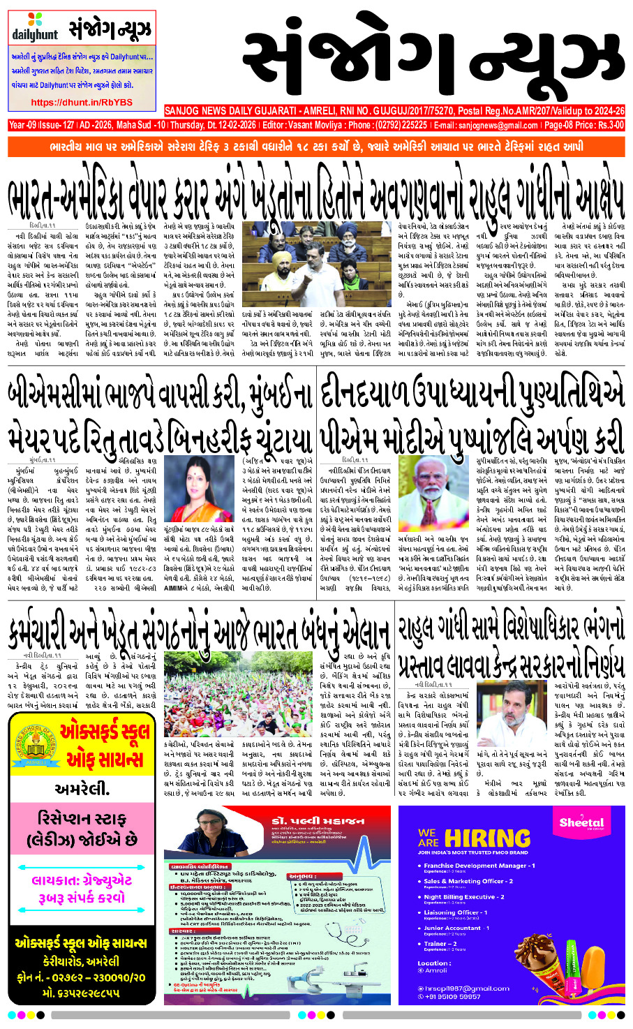 Home ઇપેપેર E-paper 12-02-2026 ઇપેપેર E-paper 12-02-2026 By Sanjog News - 12/02/2026 RELATED ARTICLESMORE FROM AUTHOR E- PAPER 11-02-2026 E – PAPER 10-02-2026 E-paper 09-02-2026 E-paper 08-02-2026 E-paper 06-02-2026 E – PAPER 05-02-2026 E- PAPER 04-02-2026 E- PAPER 03-02-2026 E-paper 02-02-2026 E- PAPER 01-02-2026 E – PAPER 31-01-2026 E- PAPER 30-01-2026 ‘તું ગરીબ બાપની દીકરી છો અમારે તું જોઇતી નથી’ કહી સાસરિયાએ... 06/02/2026 ધોરાજીમાં વિશ્વ હિન્દુ પરિષદ દ્વારા રામ મંદિર ખાતે સંત રવિદાસ જયંતિની... 09/02/2026 પહેલી વાર ટીમ ઈન્ડિયા માટે બે ડાબા હાથના બેટ્સમેનોએ બેટિંગ શરૂ... 08/02/2026 ભારતીય ખેલાડીઓ ટી ૨૦ વર્લ્ડ કપમાં તેમના પરિવારોને સાથે લઈ જઈ... 10/02/2026 કચ્છના ભોરારા ગામે કેનાલમાં ડૂબી જવાથી બે લોકોના મોત! ત્રણ કલાકની... 06/02/2026 ‘ધ ૫૦’ એ જ જૂની પેટર્નને અનુસરતું નથી, એક નવો રસ્તો... 10/02/2026 સીપીઆઇ એમ અને સીપીઆઇ નેતાઓએ હવે તેમની સામે કાર્યવાહી કરવા માટે... 10/02/2026 બગસરા એસ.ટી. ડેપોમાં નવા ડ્રાઈવરો આવતા મોટાભાગના બંધ થયેલા રૂટ શરૂ 09/02/2026 ચેમ્પ્યન બન્યા પછી આરસીબી પર પૈસાનો વરસાદ થયો છે,આરસીબીને ૬ કરોડ... 06/02/2026 વંદે માતરમના નિયમોમાં ફેરફાર,ધાર્મિક સ્વતંત્રતાનું ઉલ્લંઘન અને વિવાદને પ્રોત્સાહન આપતું પગલું... 11/02/2026