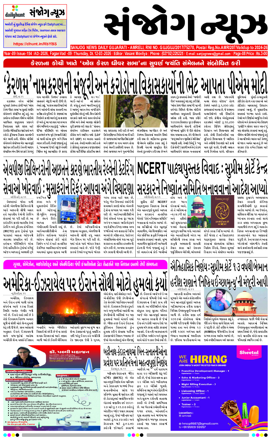 Home ઇપેપેર E-paper 12-03-2026 ઇપેપેર E-paper 12-03-2026 By Sanjog News - 12/03/2026 RELATED ARTICLESMORE FROM AUTHOR E-paper 11-03-2026 E-Paper 09-03-2026 E- PAPER 08-03-2026 E- PAPER 07-03-2026 E – PAPER 06-03-2026 E-paper 04-03-2026 E-paper 03-03-2026 E-paper 02-03-2026 E- PAPER 01-03-2026 E-paper 28-02-2026 E- PAPER 27-02-2026 E-paper 26-02-2026 ગાંધીનગરમાં આવેલી પ્રસિધ્ધ અડાલજ વાવની મુલાકાત લીધી 10/03/2026 બોલિવૂડથી લઈને દક્ષિણ સુધીના ખેલાડીઓએ ભારતની જીતને વધાવવાની ઉજવણી કરી, સ્ટાર્સે... 09/03/2026 બિહારમાં રાજ્યસભા ચૂંટણી માટે મતદાન શરૂ થવાનું છે; કોઈ ઉમેદવારે પોતાનું... 11/03/2026 મધ્ય પૂર્વમાં યુદ્ધ દરમિયાન, યુક્રેને રશિયા પર મોટો હુમલો કર્યો, ક્રુઝ... 11/03/2026 સોશિયલ મીડિયા પર ફોટા વાયરલ કરી સગીરાની પજવણી કરી 10/03/2026 પહેલા કરતા વધુ ખતરનાક ધુરંધર-૨નું ટ્રેલર રિલીઝ, રણવીર છવાયો 08/03/2026 ભાજપે ચૂંટણી પંચને બે તબક્કામાં પશ્ચિમ બંગાળની ચૂંટણીઓ કરાવવા વિનંતી કરી... 09/03/2026 ઓડિશાના પારાદીપ ખાતે ઈફકોના એસિડ પ્લાન્ટનો અમિત શાહે કરાવ્યો શુભારંભ 08/03/2026 ગુજરાતની ૬ મહાનગરપાલિકાઓમાં ૧૦ માર્ચથી વહીવટદાર શાસન લાગુઃ ચૂંટણી પહેલા સિનિયર... 08/03/2026 અઠવાડિક ખેતી કાર્યો 09/03/2026