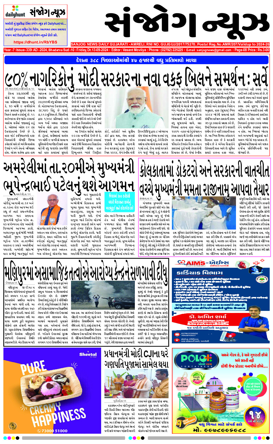 Home ઇપેપેર E-paper 13-09-2024 ઇપેપેર E-paper 13-09-2024 By Sanjog News - 13/09/2024 RELATED ARTICLESMORE FROM AUTHOR E-paper 26-02-2026 E- PAPER 25-02-2026 E -PAPER 24-02-2026 E-paper 22-02-2026 E- PAPER 21-02-2026 E – PAPER 20-02-2026 E- PAPER 19-02-2026 E-PAPER 18-02-2026 E-paper 17-02-2026 E- PAPER 16-02-2026 E-paper 15-02-2026 E- PAPER 14-02-2026 સુરતમાં સામૂહિક આપઘાતની હચમચાવી નાંખે તેવી ઘટનાઃ વ્યાજખોરના ત્રાસથી હસતા-રમતા પરિવાર... 25/02/2026 લુધિયાણા કોર્ટનો ચુકાદોઃ આંતરરાજ્ય દાણચોર અજિત સિંહને ગાંજા પકડવા બદલ ૧૦... 26/02/2026 ડોનાલ્ડ ટ્રમ્પે ૧૦ ટકા ગ્લોબલ ટેરિફ કન્ફર્મેશનની જાહેરાત કર્યા પછી ડોનાલ્ડ... 21/02/2026 અમરેલી ‘તેરા તુજકો અર્પણ’ અભિયાન હેઠળ પોલીસે ગુમ થયેલી રૂ.૭૦,૦૦૦ની સોનાની... 21/02/2026 અમરેલી તાલુકાના નાના માચીયાળા ગામે ર્પાકિંગ યાર્ડમાંથી ટ્રકની ચોરી 21/02/2026 વડિયાના તરઘરી ગામે પત્નીએ કરેલા કેસથી માઠું લાગી આવતા પતિનો આપઘાતનો... 22/02/2026 જૂનાગઢના ધારાસભ્ય સંજય કોરડીયા ફરી ચર્ચામાં, ધમકી, ફેક એકાઉન્ટ બાદ હવે... 26/02/2026 શિખર ધવન સોફી શાઇન સાથે લગ્ન કરે છે, યુઝવેન્દ્ર ચહલે ડાન્સ... 22/02/2026 સાઉથ સ્ટાર સાઈ પલ્લવી ફિલ્મફેર એવોર્ડ્સમાં હાજરી આપવા માટે કેરળ પહોંચી... 24/02/2026 યુક્રેનને પરમાણુ શાસ્ત્રો પૂરા પાડવાની પશ્ચિમી યોજનાઓના ખુલાસાથી હોબાળો મચી ગયો,... 25/02/2026