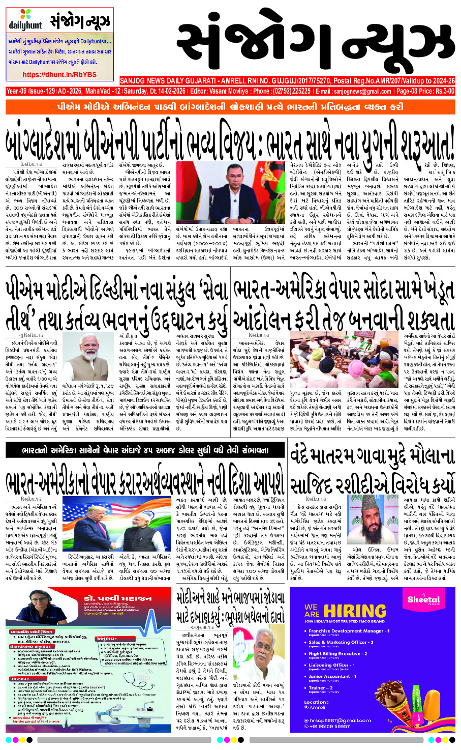 Home ઇપેપેર E- PAPER 14-02-2026 ઇપેપેર E- PAPER 14-02-2026 By Sanjog News - 14/02/2026 RELATED ARTICLESMORE FROM AUTHOR E- PAPER 13-02-2026 E-paper 12-02-2026 E- PAPER 11-02-2026 E – PAPER 10-02-2026 E-paper 09-02-2026 E-paper 08-02-2026 E-paper 06-02-2026 E – PAPER 05-02-2026 E- PAPER 04-02-2026 E- PAPER 03-02-2026 E-paper 02-02-2026 E- PAPER 01-02-2026 આઇસીસી રેન્કિંગમાં ફેરફાર થયો છે,પાકિસ્તાની ખેલાડી સાહિબજાદા ફરહાને નંબર ૧ સ્થાન... 11/02/2026 રાજકોટ ભાજપના રંગીન મિજાજી કોર્પોરેટરની મહિલા કાર્યકર્તા સાથે બિભત્સ ચેટ વાયરલ 09/02/2026 અમદાવાદના મણિનગર અને વટવામાં ખેલાયો ખૂની ખેલ! એક જ રાતમાં બે... 12/02/2026 નવસારી ભાજપમાં ભડકો, બે મહામંત્રીઓએ આપ્યા રાજીનામા, અન્યાયનો આરોપ લગાવ્યો 12/02/2026 સરકાર રાહુલ ગાંધી વિરુદ્ધ વિશેષાધિકાર ભંગ પ્રસ્તાવ નહીં લાવે; વિવાદાસ્પદ ભાષણને... 12/02/2026 સા.કુંડલા-લીલીયા મત વિસ્તારમાં ફોર્મ નં. ૭ મુદ્દે વિવાદ 11/02/2026 પ્રાકૃતિક કૃષિ ક્ષેત્રે મોડલ ફાર્મ તૈયાર કરનાર જરખીયાના ખેડૂતનું સન્માન 13/02/2026 દીપિકા પાદુકોણ પછી, પીઢ અભિનેતા પ્રકાશ રાજે સંદીપ રેડ્ડી વાંગાની ‘સ્પિરિટ’... 09/02/2026 રાજસ્થાનમાં લગ્ન સમારંભમાંથી દારૂ સમજીને ડીશ ધોવાનું કેમિકલ પીધું, જેના કારણે... 13/02/2026 વડીયાના લુણીધારમાં બાઇક ભટકાવવા બાબતે ઠપકો આપતા યુવકનું માથું ફોડ્યું 13/02/2026