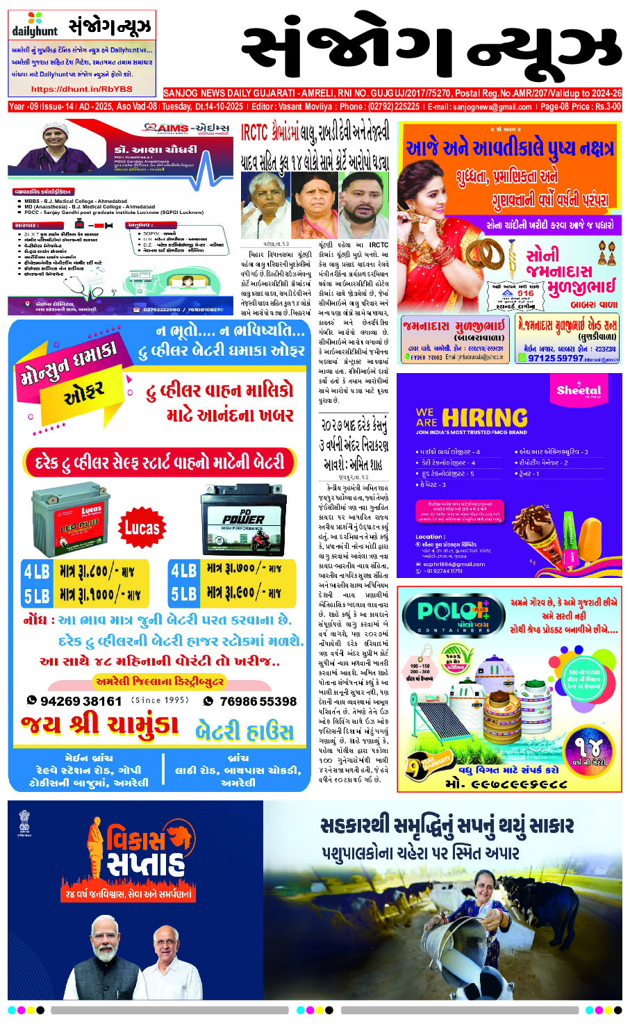 Home ઇપેપેર E-paper 14-10-2025 ઇપેપેર E-paper 14-10-2025 By Sanjog News - 14/10/2025 RELATED ARTICLESMORE FROM AUTHOR કૃતિકા કામરા અને ગૌરવ કપૂરના લગ્નમાં વિરેન્દ્ર સેહવાગ અને યુવરાજ સિંહે જારદાર ડાન્સ કર્યો E- PAPER 13-03-2026 E-paper 12-03-2026 E-paper 11-03-2026 E-Paper 09-03-2026 E- PAPER 08-03-2026 E- PAPER 07-03-2026 E – PAPER 06-03-2026 E-paper 04-03-2026 E-paper 03-03-2026 E-paper 02-03-2026 E- PAPER 01-03-2026 સા.કુંડલામાં માર્ગ અને મકાન વિભાગના કર્મચારીને ગાળો આપી જાનથી મારી નાખવાની... 07/03/2026 ઈરાની નાગરિકોએ ઘરમાં રહેવું જાઈએ, યુએસ સૈન્યએ ઈરાનીઓ માટે એક સલાહકાર... 09/03/2026 આપણે એક પડોશી પ્રદેશ છીએ, અને પશ્ચિમ એશિયાની સ્થિર તા આપણા... 09/03/2026 અમરેલી કોલેજ ઓફ નેચરલ ફાર્મિગ અને FWWB વચ્ચે MOU 13/03/2026 ભારત ચીનની ઔદ્યોગિક શક્તિ સાથે કેવી રીતે સ્પર્ધા કરશે, રાહુલ ગાંધી 07/03/2026 તુર્કીમાં ફરી ભૂકંપના આંચકા અનુભવાયા, લોકો ગભરાટમાં ઘરોમાંથી બહાર નીકળી ગયા 13/03/2026 ઉત્તર પ્રદેશમાં ૧૦ એપ્રિલે અંતિમ મતદાર યાદી જાહેર થશે, ૮.૪ મિલિયનથી... 07/03/2026 દારૂના અડ્ડા પર રેડ પાડતા આપ નેતાઓ પર મહિલાએ એટ્રોસિટીની ફરિયાદ... 11/03/2026 પ્રેમી પરિણીત પ્રેમિકાના ઘરે મળવા ગયો, અચાનક પતિ આવી જતા ફૂટ્યો... 07/03/2026 બગસરાના વેપારીનો મોબાઈલ હેક કરી રૂ. ૧.૧૦ લાખની ઓનલાઈન ઠગાઈ 07/03/2026
