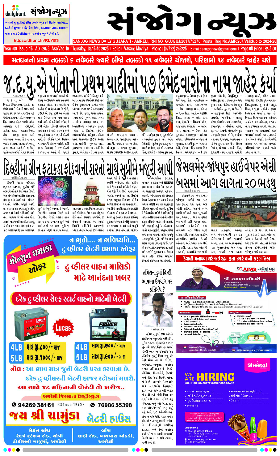 Home ઇપેપેર E – PAPER 16-10-2025 ઇપેપેર E – PAPER 16-10-2025 By Sanjog News - 16/10/2025 RELATED ARTICLESMORE FROM AUTHOR E- PAPER 07-03-2026 E – PAPER 06-03-2026 E-paper 04-03-2026 E-paper 03-03-2026 E-paper 02-03-2026 E- PAPER 01-03-2026 E-paper 28-02-2026 E- PAPER 27-02-2026 E-paper 26-02-2026 E- PAPER 25-02-2026 E -PAPER 24-02-2026 E-paper 22-02-2026 ચલાલા ખાતે માનવ સેવા ટ્રસ્ટ દ્વારા હનુમાનજીનો પાટોત્સવ યોજાયો 04/03/2026 અમરેલીમાં પતિના અવસાન બાદ તણાવમાં રહેતી મહિલાએ ઝેરી દવા પી જીવન... 06/03/2026 રાજસ્થાનના ત્રણ શહેરોના નામ બદલાયા, માઉન્ટ આબુનો પણ સમાવેશ 28/02/2026 સાવરકુંડલાની કબીર ટેકરી ખાતે સાહિત્ય ગોષ્ઠીનું આયોજન 02/03/2026 દુઃખની આ ઘડીમાં પાકિસ્તાનની સરકાર અને લોકો ઈરાનની સાથે ઉભા છે,... 02/03/2026 ઓહિયોના એક ફાર્મમાં ભીષણ આગ લાગી, જેમાં લગભગ ૬,૦૦૦ પ્રાણીઓ માર્યા... 03/03/2026 હિરાણામાં કાળુભાર નદી પર રૂ.૫૨ લાખના ખર્ચે ચેકડેમ રિપેરિંગનું ખાતમુહૂર્ત 02/03/2026 ભૂતપૂર્વ કેપ્ટન રિકી પોન્ટીગે પણ સ્વીકાર્યું હતું કે મેક્સવેલ કદાચ ૨૦૨૮ની... 05/03/2026 અમરેલીના શેડુભારમાં રૂ. ૧.૨૦ કરોડના ખર્ચે પ્રાથમિક શાળાનું લોકાર્પણ 03/03/2026 એવી શંકા છે કે રાજ્યસભામાં જવાનો નિર્ણય મુખ્યમંત્રીનો નહોતો,મંત્રી મદન સાહનીના... 05/03/2026