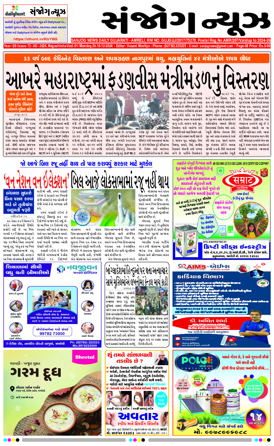 Home ઇપેપેર E-paper 16-12-2024 ઇપેપેર E-paper 16-12-2024 By Sanjog News - 16/12/2024 RELATED ARTICLESMORE FROM AUTHOR E-paper 28-02-2026 E- PAPER 27-02-2026 E-paper 26-02-2026 E- PAPER 25-02-2026 E -PAPER 24-02-2026 E-paper 22-02-2026 E- PAPER 21-02-2026 E – PAPER 20-02-2026 E- PAPER 19-02-2026 E-PAPER 18-02-2026 E-paper 17-02-2026 E- PAPER 16-02-2026 અમરેલીમાં પિતાએ દીકરી સાથે જીવન ટૂંકાવવાના કેસમાં પત્ની સામે ફરિયાદ 26/02/2026 ગોવિંદપુર ગામે સિંહણના હુમલાનો ભોગ બનેલા મહિલાના પરિવારને... 25/02/2026 લોકો સ્વદેશી ઉત્પાદનો ખરીદે છે, ત્યારે તેઓ દેશને આત્મનિર્ભર બનાવવાના અભિયાનને... 22/02/2026 યોગી આદિત્યનાથની સિંગાપોર મુલાકાતના પહેલા દિવસે, યુનિવર્સલ સક્સેસ ગ્રુપ સાથે ૬,૬૫૦... 23/02/2026 આપણી અરજી અને ઈશ્વરની મરજી 23/02/2026 મોટી કુંકાવાવની વ્રજ વિદ્યાલયનું CET પરીક્ષામાં ઉજ્જવળ પરિણામ 26/02/2026 ગૌહર ખાન પવિત્ર રમઝાન મહિનામાં મક્કાથી તેમના નાના પુત્રની પહેલી ઝલક... 27/02/2026 સાવરકુંડલાના મઢડા મર્ડર કેસમાં કોર્ટે આરોપીને જામીન આપ્યા 24/02/2026 ગીરગઢડા ઝુડવડલી પાસે સિંહ પરિવારે ગાયનું મારણ કર્યું 22/02/2026 ભાજપ આસામમાં જીત મેળવવા માટે કોઈ કસર છોડશે નહીં, ભાજપ, એજીપી... 28/02/2026
