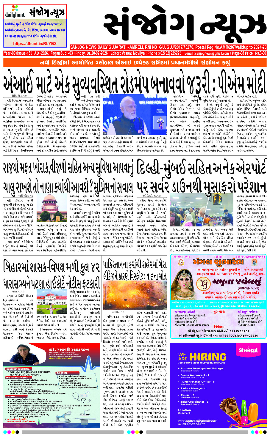 Home ઇપેપેર E – PAPER 20-02-2026 ઇપેપેર E – PAPER 20-02-2026 By Sanjog News - 20/02/2026 RELATED ARTICLESMORE FROM AUTHOR E- PAPER 19-02-2026 E-PAPER 18-02-2026 E-paper 17-02-2026 E- PAPER 16-02-2026 E-paper 15-02-2026 E- PAPER 14-02-2026 E- PAPER 13-02-2026 E-paper 12-02-2026 E- PAPER 11-02-2026 E – PAPER 10-02-2026 E-paper 09-02-2026 E-paper 08-02-2026 અમરેલી જિલ્લા ભાજપનું નવું માળખું જાહેર, ૮ ઉપપ્રમુખ અને ૩ મહામંત્રી... 14/02/2026 માલેગાંવના ડેપ્યુટી મેયરના ચેમ્બરમાંથી ‘ ટીપુ સુલતાન’ મળી આવ્યું, ભાજપે તેને... 14/02/2026 ઉનાના તડ ચેકપોસ્ટ નજીક બાઈક સાથે ગાય અથડાતા ડોળાસાના આધેડનું મોત 20/02/2026 કુલ ૧૮૭ જેટલા લાંચિયા અધિકારીઓની એલસીબી દ્વારા ધરપકડ કરવામાં આવી છે 18/02/2026 અમરેલીના પૂર્વ સાંસદ નારણભાઈ કાછડીયાએ રાજ્ય સરકારના ઐતિહાસિક બજેટને આવકાર્યું 20/02/2026 મુખ્યમંત્રી યોગીને મળ્યા પછી,મોહન ભાગવત બંને નાયબ મુખ્યમંત્રીઓને મળ્યા 19/02/2026 અજય દેવગણથી લઈને અનુપમ ખેર અને આયુષ્માન ખુરાના સુધી, બધાએ ભારત-પાકિસ્તાન... 16/02/2026 જાણો..દેશ-દુનિયામાં થતા જાત-જાતના ફ્રોડ.! – ૩ 18/02/2026 E- PAPER 14-02-2026 14/02/2026 ટીંબી હોસ્પિટલના પ્રણેતા સ્વામી નિર્દોષાનંદજી મહારાજને મરણોત્તર ‘પદ્મ સન્માન’ આપવા માંગ 20/02/2026