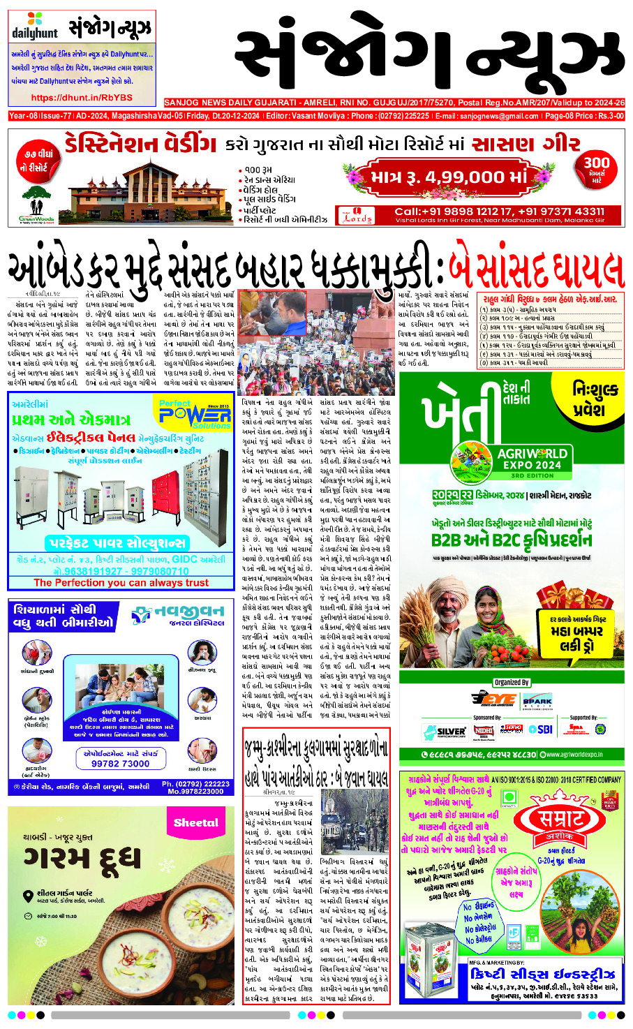Home ઇપેપેર E-paper 20-12-2024 ઇપેપેર E-paper 20-12-2024 By Sanjog News - 20/12/2024 RELATED ARTICLESMORE FROM AUTHOR E-paper 28-02-2026 E- PAPER 27-02-2026 E-paper 26-02-2026 E- PAPER 25-02-2026 E -PAPER 24-02-2026 E-paper 22-02-2026 E- PAPER 21-02-2026 E – PAPER 20-02-2026 E- PAPER 19-02-2026 E-PAPER 18-02-2026 E-paper 17-02-2026 E- PAPER 16-02-2026 સા.કુંડલાની કબીર ટેકરી ખાતે ભવ્ય નિઃશુલ્ક નેત્ર નિદાન કેમ્પ યોજાયો 28/02/2026 ઉનાના સામતેર ગામના આરોગ્ય કેન્દ્રમાં ડોકટરની જગ્યા ભરવા માગણી 23/02/2026 એસસી એસટી અને ઓબીસી માટે ફાળવાયેલા બજેટનો ઉપયોગ ન થવાના આક્ષેપો... 26/02/2026 અમરેલીની પોસ્ટઓફિસને બોમ્બથી ઉડાવી દેવાની ધમકી મળતા ચકચાર 28/02/2026 E- PAPER 27-02-2026 27/02/2026 અંતિમ ટી ૨૦ માં રેકોર્ડ્સનો વરસાદ, જેમિમાહએ ૨૫૦૦ રન પૂરા કર્યા;... 22/02/2026 ભાજપ હવે નવા અવતારમાં, તાલીમ પછી ‘ભગવા રંગ’ વધુ ગાઢ બનશે,... 21/02/2026 ૮૮ દેશોએ ભારતના વિઝન, ‘સર્વજન હિતાયા-સર્વજન સુખાયા’ પર વૈશ્વિક સર્વસંમતિને સમર્થન... 21/02/2026 લાઠીના મેમદામાં માતાજીના દર્શન કરવા જતા કર્મકાંડી યુવક પર હુમલો 22/02/2026 કીર્તિ પટેલે રિમાન્ડ દરમિયાન કર્યા અનેક ઘટસ્ફોટ, ભાગીને ઉદયપુર છુપાવાનું જણાવ્યું... 23/02/2026
