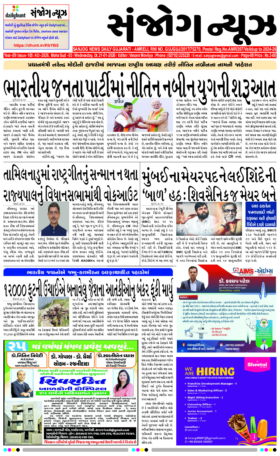 Home ઇપેપેર E-paper 21-01-2026 ઇપેપેર E-paper 21-01-2026 By Sanjog News - 21/01/2026 RELATED ARTICLESMORE FROM AUTHOR E – PAPER 31-01-2026 E- PAPER 30-01-2026 E-paper 29-01-2026 E-paper 28-01-2026 E – PAPER 26-01-2026 E-paper 25-01-2026 E – PAPER 24-01-2026 E – PAPER 23-01-2026 E-paper 22-01-2026 E – PAPER 20-01-2026 E-paper 19-01-2026 E- PAPER 16-01-2026 ક્રિકેટ વિશે નાટક રચી રહ્યા છે, પરંતુ શૂટિંગ ઇવેન્ટ માટે તેમના... 29/01/2026 ઝારખંડઃ ટ્રક સાથે અથડાયા બાદ ચાર બાઇક સવારોના મોત, શોક ફેલાયો 27/01/2026 એસવાયએલ પર પંજાબ-હરિયાણા બેઠક, બંને મુખ્યમંત્રીઓએ કહ્યું કે ચર્ચા સારા વાતાવરણમાં... 27/01/2026 બગદાણા કેસમાં મોટો ધડાકો, માયાભાઈ આહીરના પુત્ર જયરાજ આહીરની એસઆઇટી દ્વારા... 25/01/2026 સંજય રાઉતે અજિત પવારની વિમાન દુર્ઘટના તપાસ પર પ્રશ્નો ઉઠાવ્યા 29/01/2026 અમેરિકા ભારત-ઇયુના ‘બધા સોદાઓની માતા’થી અમેરિકા ચિડાઈ ગયું, ટ્રમ્પના મંત્રીએ યુરોપને... 27/01/2026 વડોદરાના કરજણ નજીક અકસ્માત, ટ્રાવેલ્સ બસ ટ્રક સાથે ધડાકાભેર અથડાઈ,૨ના મોત 30/01/2026 છેલ્લી ઘડીએ તીવ્ર ઉછાળો, સેન્સેક્સ ૩૧૯ પોઈન્ટ અને નિફ્ટી ૧૨૭ પોઈન્ટ... 27/01/2026 બિહારની એક સરકારી શાળામાં ગણતંત્ર દિવસ પર ‘જિન્ના ઝિંદાબાદ’ ના નારા... 27/01/2026 કોઈ મારા નકલી ફેસબુક આઈડીને ષડયંત્રના ભાગ રૂપે ચલાવી રહ્યું છે’,... 31/01/2026
