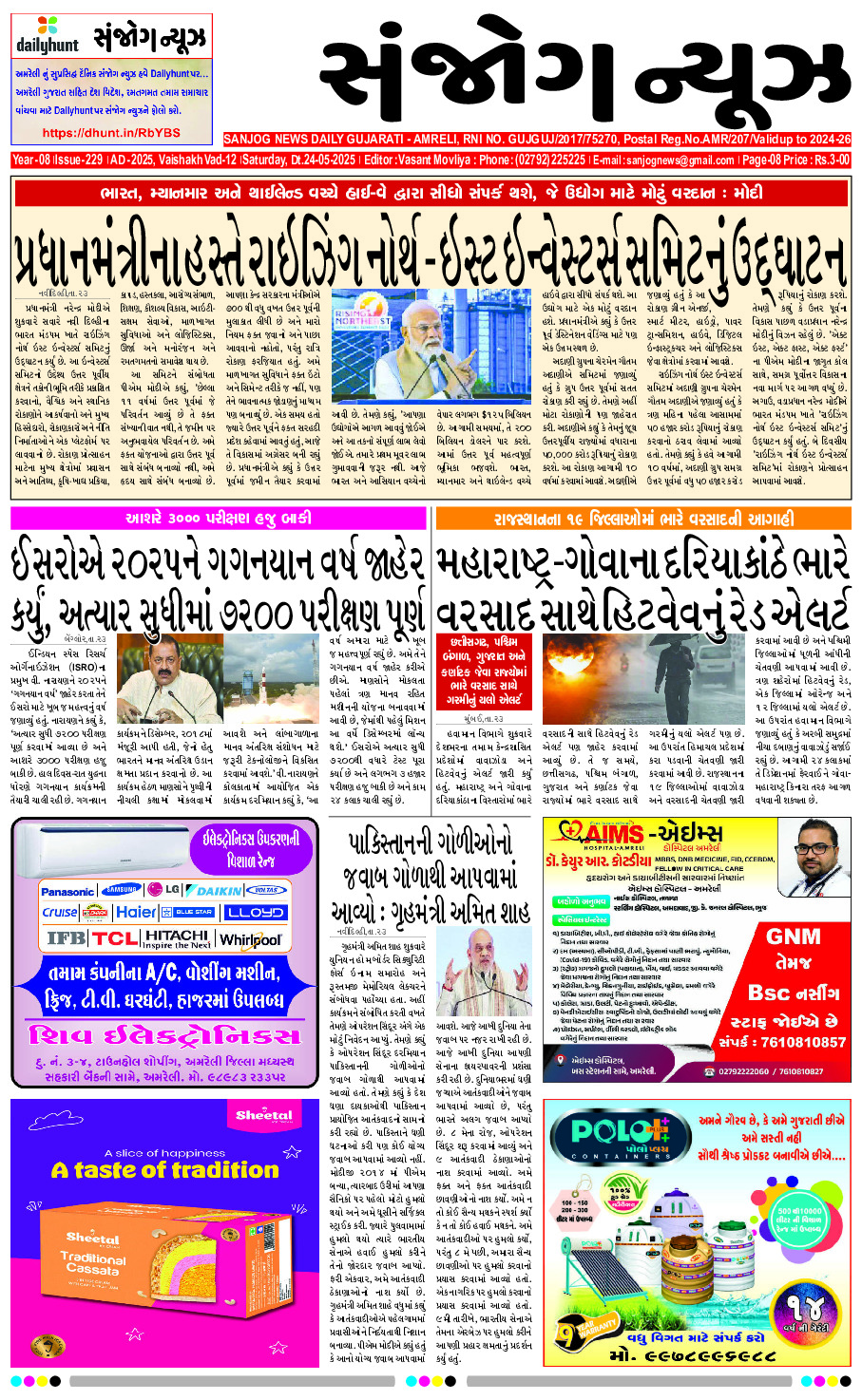 Home ઇપેપેર E-PAPER 24-05-2025 ઇપેપેર E-PAPER 24-05-2025 By Sanjog News - 24/05/2025 RELATED ARTICLESMORE FROM AUTHOR E – PAPER 09-12-2025 E-paper 08-12-2025 E- PAPER 07-12-2025 E-paper 06-12-2025 E – PAPER 05-12-2025 E- PAPER 04-12-2025 E-paper 03-12-2025 E – PAPER 02-12-2025 E-paper 01-12-2025 E – PAPER 30-11-2025 E- PAPER 29-11-2025 E – PAPER 28-11-2025 ૮ ડિસેમ્બરથી શરૂ થતા અઠવાડિયામાં ચાર દિવસ બેંકો બંધ રહેશે 07/12/2025 અમરેલી જિલ્લા તાલીમ ભવન ખાતે ઝોન કક્ષાની રિસર્ચ પેપર કોન્ફરન્સનું આયોજન... 04/12/2025 સા.કુંડલા શહેરને રેલવે ફાટક મુક્ત કરવા માટે ધારાસભ્ય મહેશ કસવાલાની મહત્વની... 06/12/2025 અમરેલીમાં લાઠી બાયપાસ ચોકડી પાસેથી કતલખાને લઈ જવાતી ૧૧ ભેંસો બચાવાઈ 03/12/2025 રાજ્યમાં આગામી દિવસોમાં ઠંડીનું જોર વધી શકે છે. હવામાન વિબાગની આગાહી 03/12/2025 ગુજરાતમાં મતદારયાદીમાં ૫૩ લાખના નામ કપાય તેવી સંભાવના 05/12/2025 ગોવા નાઈટક્લબ ઘટનાઃ ચાર આરોપીઓને છ દિવસની પોલીસ કસ્ટડીમાં મોકલવામાં આવ્યા... 08/12/2025 બાબરા તાલુકાના મીયા ખીજડીયા ગામે શેરીમાં કચરો નાખવા બાબતે મારામારી 03/12/2025 સાવરકુંડલાની ગૌશાળામાં રતાંધળાથી પીડિત વાછરડીની સફળ સારવાર 06/12/2025 આપણે જીવનના અંત સુધી ભારતીય તરીકે ઓળખાવું જાઈએઃ મુખ્યમંત્રી યોગી 06/12/2025