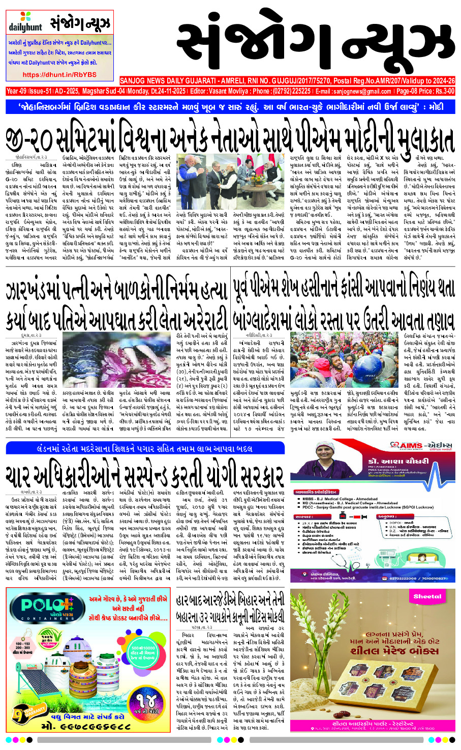 Home ઇપેપેર E-paper 24-11-2025 ઇપેપેર E-paper 24-11-2025 By Sanjog News - 24/11/2025 RELATED ARTICLESMORE FROM AUTHOR E- PAPER 26-11-2025 E- PAPER 25-11-2025 E-paper 21-11-2025 E-paper 20-11-2025 E-paper 19-11-2025 E-paper 18-11-2025 E-paper 17-11-2025 E – PAPER 16-11-2025 E-PAPER 15-11-2025 E- PAPER 14-11-2025 E- PAPER 13-11-2025 E- PAPER 12-11-2025 રામ જન્મભૂમિ મંદિરમાં ધ્વજવંદન એ યજ્ઞની પરાકાષ્ઠા નથી પરંતુ એક નવા... 25/11/2025 કચ્છ સરહદે ઘૂસણખોરી કરતા પાકિસ્તાની નાગરિક ઝડપાયો, તપાસ ચાલી રહી છે 26/11/2025 ૨૬/૧૧ ના હુમલાની વર્ષગાંઠ, આતંકવાદ સામે શૂન્ય-સહિષ્ણુતાની નીતિ,અમિત શાહ 26/11/2025 ક્રાંકચ ગામે ફોનમાં બોલાચાલીની દાઝ રાખી બે શખ્સોએ પાઇપથી યુવકને માર... 21/11/2025 બિહારમાં ‘પાવર ગેમ : સમ્રાટ ચૌધરીનું કદ વધ્યું નાયબ મુખ્યમંત્રીને... 24/11/2025 ક્રિકેટર ચેતેશ્વર પૂજારાના સાળાએ અંગત કારણોસર જિંદગી ટૂંકાવી! 26/11/2025 અમરેલી એલસીબીએ બિયરના ટીન સહિત રૂ.૧ર.૩ર લાખનો મુદ્દામાલ કબજે કર્યો 21/11/2025 મુખ્યમંત્રીની ખુરશી ખતરામાં! થોડા વખતમાં ડી કે સીએમ બની જશે,ધારાસભ્યનો દાવો 26/11/2025 નાગરિકોની સુરક્ષા અને સમૃદ્ધ ભવિષ્ય માટે ન્યાય એ પાયો હોવો જાઈએ,યોગી... 21/11/2025 મૌની રોયે તાજેતરમાં જ તેની સાથે બનેલી એક ચિંતાજનક ઘટનાનો ખુલાસો... 21/11/2025