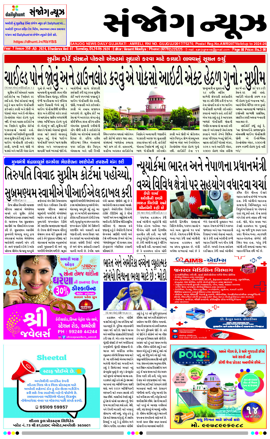 Home ઇપેપેર E-Paper 24.9.24 ઇપેપેર E-Paper 24.9.24 By suresh desai - 24/09/2024 RELATED ARTICLESMORE FROM AUTHOR E-paper 26-02-2026 E- PAPER 25-02-2026 E -PAPER 24-02-2026 E-paper 22-02-2026 E- PAPER 21-02-2026 E – PAPER 20-02-2026 E- PAPER 19-02-2026 E-PAPER 18-02-2026 E-paper 17-02-2026 E- PAPER 16-02-2026 E-paper 15-02-2026 E- PAPER 14-02-2026 યુવાનો પ્રેમ માટે ભાગી જઈને લગ્ન કરે છે તે ભારતીય સંસ્કૃતિને... 25/02/2026 ભાવનગરના સિહોર નજીક કારમાંથી ૨૩૦૪ દારૂની બોટલ સાથે ૨ ઝડપાયા, પોલીસ... 21/02/2026 મેરેજ બિઝનેસઃ લગ્ન કરો અને રૂપિયાવાળા બનો 25/02/2026 સપા અને બસપાએ ઇન્ડિયા એઆઇ ઇમ્પેક્ટ સમિટ”માં યુથ કોંગ્રેસના વિરોધની નિંદા... 21/02/2026 દામનગરમાં ગુજરાત સાહિત્ય અકાદમી દ્વારા કવિ સંમેલન યોજાયું 26/02/2026 માનવતા કયારેય સંઘર્ષનો ભોગ ન બનવી જોઈએ,’ પીએમ મોદીએ ગાઝા શાંતિ... 26/02/2026 માત્ર કાયર અને ક્રૂર લોકો જ જાતિના મુદ્દા ઉઠાવે છે; યુપી... 21/02/2026 અમરેલી જિલ્લાના રોડ રસ્તા પર અકસ્માતની વધુ ત્રણ ઘટના નોંધાઈ 20/02/2026 લેખકોને હંમેશા ઉદ્યોગમાં ઓળખ મેળવવા માટે સંઘર્ષ કરવો પડ્યો છે 23/02/2026 જૂનાગઢના ધારાસભ્ય સંજય કોરડીયા ફરી ચર્ચામાં, ધમકી, ફેક એકાઉન્ટ બાદ હવે... 26/02/2026
