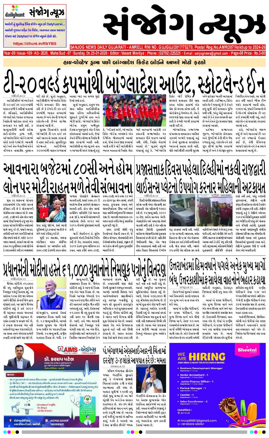 Home ઇપેપેર E-paper 25-01-2026 ઇપેપેર E-paper 25-01-2026 By Sanjog News - 25/01/2026 RELATED ARTICLESMORE FROM AUTHOR E – PAPER 31-01-2026 E- PAPER 30-01-2026 E-paper 29-01-2026 E-paper 28-01-2026 E – PAPER 26-01-2026 E – PAPER 24-01-2026 E – PAPER 23-01-2026 E-paper 22-01-2026 E-paper 21-01-2026 E – PAPER 20-01-2026 E-paper 19-01-2026 E- PAPER 16-01-2026 ઋતિક રોશને ‘સેનોરિટા’નું શૂટિંગ અસહ્ય પીડામાં કર્યું, કોરિયોગ્રાફરે અભિનેતાની સ્થિતિનો ખુલાસો... 25/01/2026 અમરેલીમાં એક સામાજિક આગેવાન અને રાજકીય આગેવાન વચ્ચે તૂ-તૂ મે-મે 28/01/2026 રશિયાએ યુક્રેનમાં પેસેન્જર ટ્રેન પર હુમલો કર્યો, ૧૨ લોકોના મોત 28/01/2026 બંગાળમાં એસઆઇઆરઃ મમતા બેનર્જીના મંત્રી શશી પંજાને નોટિસ ફટકારી 25/01/2026 સા.કુંડલામાં બે શખ્સો પર લાકડાના ધોકા વડે હુમલો 25/01/2026 આપણે બીજું શું કરી શક્યા હોત, બાંગ્લાદેશે આઇસીસીના નિર્ણયનો સ્વીકાર કર્યો 25/01/2026 દિલ્હી-એનસીઆરમાં વરસાદથી ઠંડીમાં વધારો,ભારે પવન સાથે કરા પડવાની શક્યતા 27/01/2026 અજિત પવાર અને તેમના અંગત અંગરક્ષકનું વિમાન દુર્ઘટનામાં મૃત્યુ 28/01/2026 જીવન જીવવાની કળા એટલે કેળવણી 28/01/2026 વિજે રાહુલ ગાંધીના નિવેદન પર પ્રહાર કર્યા, કોંગ્રેસને વિદેશી પક્ષ અને... 28/01/2026