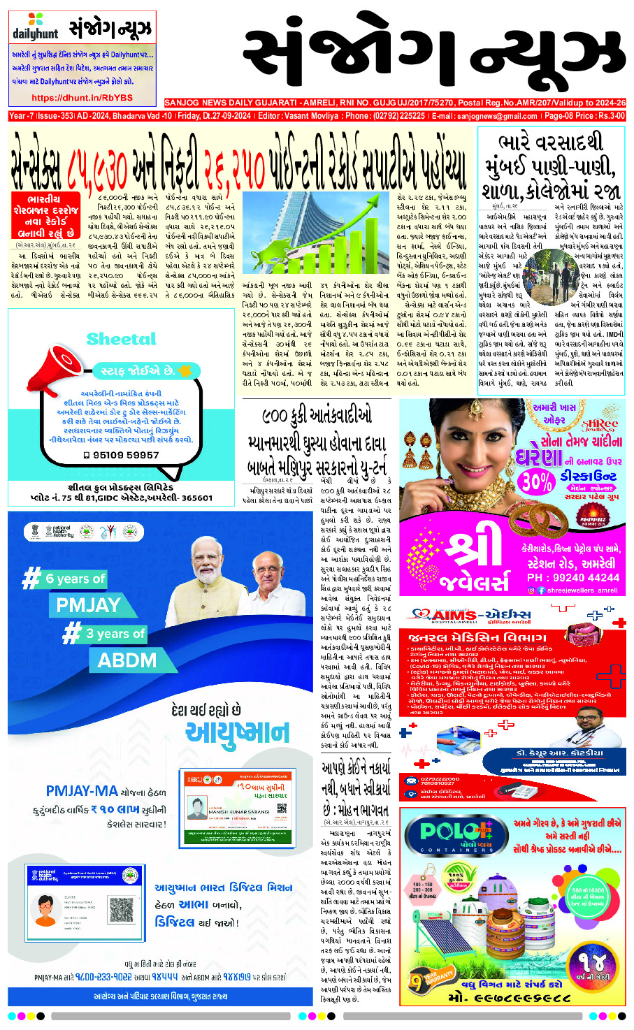 Home ઇપેપેર E-paper 27-09-2024 ઇપેપેર E-paper 27-09-2024 By Sanjog News - 27/09/2024 RELATED ARTICLESMORE FROM AUTHOR E-paper 26-02-2026 E- PAPER 25-02-2026 E -PAPER 24-02-2026 E-paper 22-02-2026 E- PAPER 21-02-2026 E – PAPER 20-02-2026 E- PAPER 19-02-2026 E-PAPER 18-02-2026 E-paper 17-02-2026 E- PAPER 16-02-2026 E-paper 15-02-2026 E- PAPER 14-02-2026 ભારત-દક્ષિણ આફ્રિકા મેચમાં બે ભાઈઓ વચ્ચે વ્યૂહાત્મક યુદ્ધ જાવા મળશે, જેમાં... 21/02/2026 ચલાલા નગરપાલિકામાં બંધ પડેલી આધાર કાર્ડની કિટ ફરી શરૂ કરવા ઉચ્ચ... 21/02/2026 આખું જંગલેશ્વર પોલીસ છાવણીમાં ફેરવાયું! લોકોએ પોતાના મકાનો જાતે જ પાડવાના... 21/02/2026 તમે ગોળગોળ જવાબ કેમ આપો છો? 22/02/2026 એઆઇ સમિટ દરમિયાન યુવા કોંગ્રેસનો હોબાળો સુનિયોજિત ષડયંત્રનો ભાગ, અનેક રાજ્યો... 24/02/2026 ‘જજમેન્ટ જે આવે તે તને મુકવો નથી’ કહી યુવકને ફટકાર્યો 25/02/2026 પ્રજાને વેરા વધારાનો ડામ આપી બગસરા પાલિકાએ રૂ. પ૮ લાખથી વધુ... 22/02/2026 સાવરકુંડલામાં કેન્સર અને થેલેસેમિયાના દર્દીઓના લાભાર્થે રક્તદાન કેમ્પ યોજાયો 24/02/2026 રાજુલાના નવા આગરિયામાં મહા રક્તદાન કેમ્પ યોજાયો 24/02/2026 અંતિમ ટી ૨૦ માં રેકોર્ડ્સનો વરસાદ, જેમિમાહએ ૨૫૦૦ રન પૂરા કર્યા;... 22/02/2026