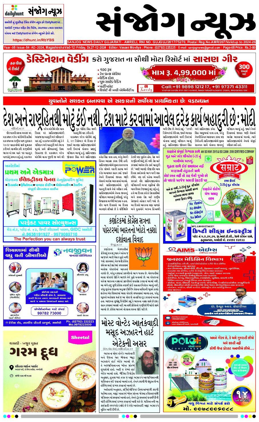 Home ઇપેપેર E-paper 27-12-2024 ઇપેપેર E-paper 27-12-2024 By Sanjog News - 27/12/2024 RELATED ARTICLESMORE FROM AUTHOR E-paper 28-02-2026 E- PAPER 27-02-2026 E-paper 26-02-2026 E- PAPER 25-02-2026 E -PAPER 24-02-2026 E-paper 22-02-2026 E- PAPER 21-02-2026 E – PAPER 20-02-2026 E- PAPER 19-02-2026 E-PAPER 18-02-2026 E-paper 17-02-2026 E- PAPER 16-02-2026 દેવભૂમિ દેવળીયા પ્રાથમિક શાળામાં સાયકલ વિતરણ કાર્યક્રમ યોજાયો 22/02/2026 ‘અવેડે કપડાં ધોવા જાવ છું’ કહીને નીકળેલી પરિણીતા લાપતા બની 27/02/2026 ધારીના વિરપુર ગામે ગીરગંગાના સહયોગથી પ્રફુલભાઈ સેજલીયાના હસ્તે ચેકડેમનું ખાતમુહૂર્ત 24/02/2026 વડોદરાના ભાયલીમાં ‘ડિજિટલ અરેસ્ટ’ ઠગાઈનો ભાંડો ફૂટ્યો,ઇન્ડસઇન્ડ બેંકની સતર્કતાથી ૧૬ લાખ... 25/02/2026 પૂનમ પાંડે બાંકે બિહારીના દરબારમાં ખૂબ રડી પડી, સાદા પોશાકમાં વૃંદાવન... 25/02/2026 કચ્છ બોર્ડર પર હવે ૨૪ કલાક મળશે વીજળી ,વાવાઝોડામાં પણ પાવર... 26/02/2026 મધ્યપ્રદેશમાં અધિકારીઓને ૧૦ થી ૬ વાગ્યા સુધી ઓફિસમાં રહેવું પડશે, મુખ્યમંત્રી 26/02/2026 બીએમસી નાણાકીય વર્ષ ૨૦૨૬-૨૭ માટે ૮૦,૯૫૨ કરોડનું બજેટ રજૂ કર્યું 25/02/2026 દીવમાં જન શિક્ષણ સંસ્થાન દ્વારા આંતરરાષ્ટ્રીય માતૃભાષા દિવસની શાનદાર ઉજવણી 24/02/2026 યુપીમાં કેન્સર સામે ઝઝૂમી રહેલા બસપા ધારાસભ્ય ઉમાશંકર સિંહના એકમાત્ર ધારાસભ્ય... 25/02/2026