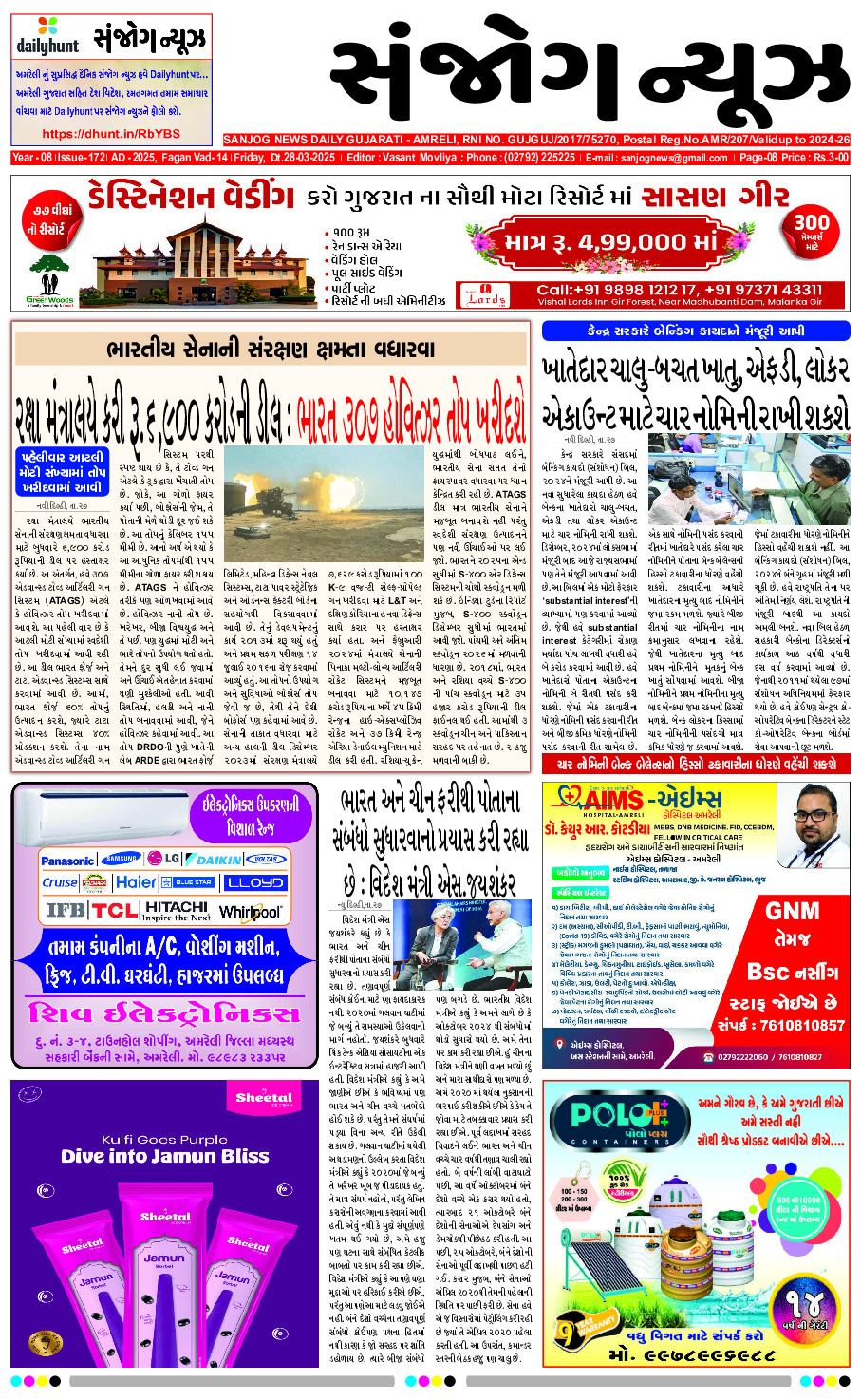 Home ઇપેપેર E-paper 28-03-2025 ઇપેપેર E-paper 28-03-2025 By Sanjog News - 28/03/2025 RELATED ARTICLESMORE FROM AUTHOR E-paper 28-02-2026 E- PAPER 27-02-2026 E-paper 26-02-2026 E- PAPER 25-02-2026 E -PAPER 24-02-2026 E-paper 22-02-2026 E- PAPER 21-02-2026 E – PAPER 20-02-2026 E- PAPER 19-02-2026 E-PAPER 18-02-2026 E-paper 17-02-2026 E- PAPER 16-02-2026 લીવર કેન્સર પછી દીપિકા કક્કરને નવી મુશ્કેલીનો સામનો કરવો પડે છે;... 23/02/2026 અમરેલીની પોસ્ટઓફિસને બોમ્બથી ઉડાવી દેવાની ધમકી મળતા ચકચાર 28/02/2026 કૃષિ ક્ષેત્રે પાક અવશેષનો જમીન ફળદ્રુપતા માટે ઉપયોગ 23/02/2026 જાણીતા સાહિત્યકાર કાલિન્દી પરીખનું ગુજરાત સાહિત્ય અકાદમી દ્વારા ચોથીવાર સન્માન 24/02/2026 એજેએલ જમીન કેસમાં ભૂપિન્દર હુડ્ડાને ‘ક્લીન ચીટ’ આપી, સીબીઆઇ કોર્ટે આરોપો... 27/02/2026 ગાયનું દૂધ બુદ્ધિશાળી બનાવે છે, ભેંસનું દૂધ ભ્રષ્ટ, રાજસ્થાનના મંત્રી મદન... 23/02/2026 કોઈ મારી ક્ષમતા પર પ્રશ્ન ઉઠાવી શકે નહીં,” ગૃહમંત્રી પરમેશ્વરે કર્ણાટકના... 25/02/2026 જિલ્લામાંથી ડિગ્રી વગર પ્રેક્ટિસ કરતો વધુ એક મુન્નાભાઈ ઝડપાયો 28/02/2026 કોટદ્વારના મોહમ્મદ દીપક દિલ્હીમાં રાહુલ ગાંધીને મળ્યા અને તેમને ગળે લગાવીને... 23/02/2026 વાનખેડે સ્ટેડિયમના એક સ્ટેન્ડનું નામ રવિ શાસ્ત્રી ના નામ પર રાખવામાં... 28/02/2026
