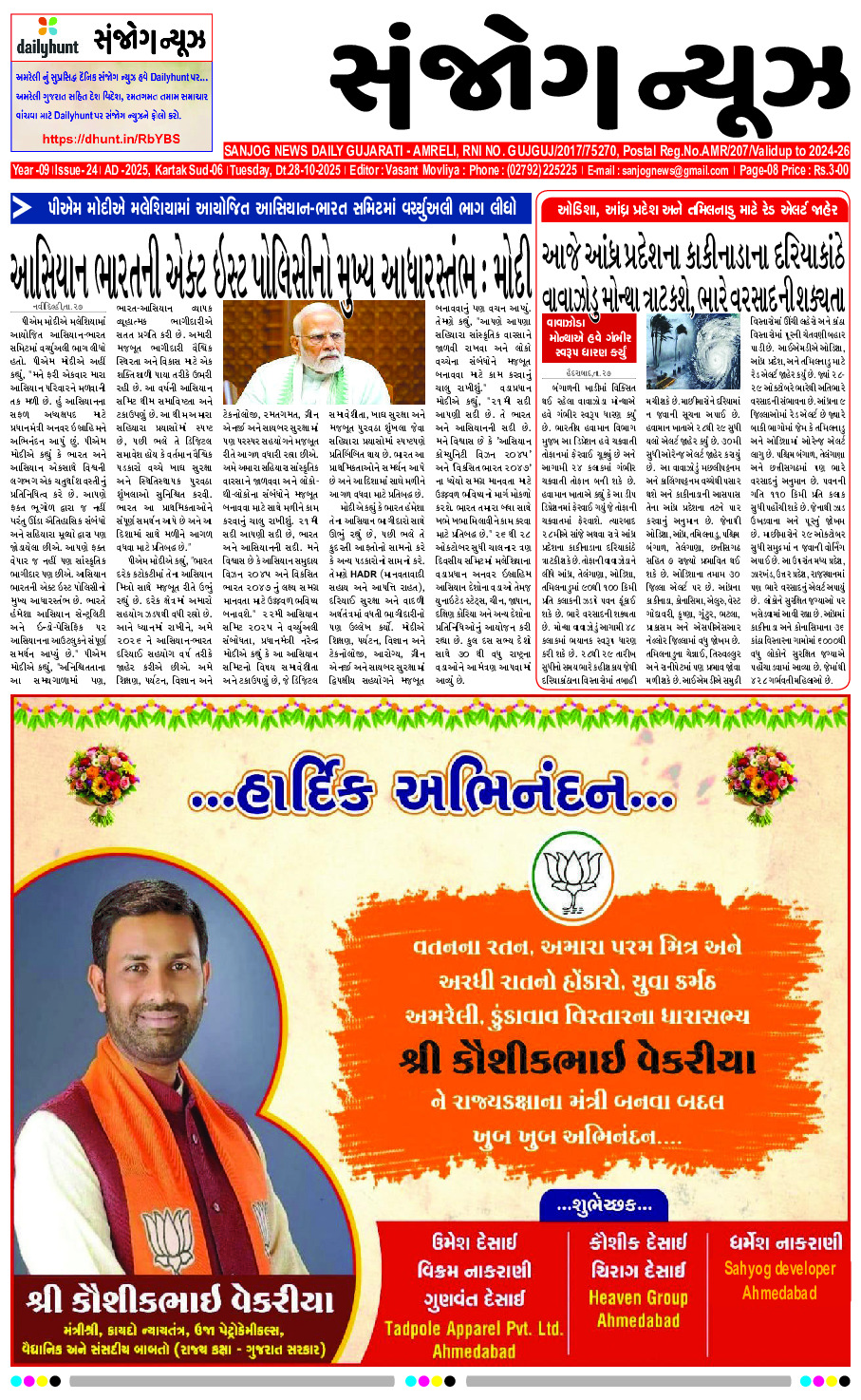 Home ઇપેપેર E-paper 28-10-2025 ઇપેપેર E-paper 28-10-2025 By Sanjog News - 28/10/2025 RELATED ARTICLESMORE FROM AUTHOR E-Paper 29-04-2026 E-PAPER 28-04-2026 E-Paper 27-04-2026 E-Paper 26-04-2026 E-Paper 25-04-2026 E-PAPER 24-04-2026 E- PAPER 23-04-2026 E- PAPER 22-04-2026 E-Paper 21-04-2026 E- PAPER 20-04-2026 E -PAPER 19-04-2026 E-Paper 18-04-2026 હરિયાણામાં ચાલતી બસમાં આગ લાગી, જેમાં બે જીવતા બળી ગયા, સાત... 28/04/2026 પંજાબના પટિયાલામાં રાજપુરા-શંભુ રેલ્વે લાઇન પર ગઈકાલે મોડી રાત્રે એક શક્તિશાળી... 29/04/2026 કોડીનારની પ્રતિષ્ઠિત પાવન વિદ્યાલયમાં પ્રવેશોત્સવ સાથે શૈક્ષણિક સત્રનો પ્રારંભ 27/04/2026 પીએમ મોદીએ મન કી બાતમાં કહ્યું કલ્પક્કમ રિએક્ટર ભારતની પરમાણુ ઉર્જા... 26/04/2026 ધોનીની વાપસીમાં વિલંબનું કારણ તેના પગની પીઠની ઈજાનું પુનરાવર્તન છે,કોચ સ્ટીફન 27/04/2026 બગસરાના જૂના ઝાંઝરિયામાં લગ્ન પ્રસંગમાં જૂની અદાવતમાં દંપતી પર હુમલો 23/04/2026 ડીસી વિરુદ્ધ આરસીબીઃ બંને ટીમોએ ઇતિહાસ રચ્યો, ૧૧ વર્ષ જૂનો રેકોર્ડ... 28/04/2026 અત્યાર સુધીમાં ચાર ધામ યાત્રા ઉપર ૨.૩૮ લાખથી વધુ યાત્રાળુઓ પહોંચ્યા... 27/04/2026 હાસ્ય કલાકાર રાજ શર્માનું ૫૦ વર્ષની ઉંમરે અવસાન, વીર દાસે ભાવનાત્મક... 25/04/2026 પૂર્વ વિપક્ષી કોંગ્રેસના નેતા પરેશ ધાનાણીએ સહપરિવાર મતદાન કર્યુ 28/04/2026