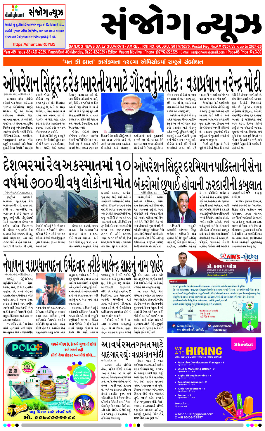 Home ઇપેપેર E – PAPER 29-12-2025 ઇપેપેર E – PAPER 29-12-2025 By Sanjog News - 29/12/2025 RELATED ARTICLESMORE FROM AUTHOR E – PAPER 30-12-2025 E-paper 28-12-2025 E- PAPER 27-12-2025 E – PAPER 26-12-2025 E – PAPER 25-12-2025 E-paper 24-12-2025 E-paper 23-12-2025 E-paper 22-12-2025 E – PAPER 21-12-2025 E – PAPER 20-12-2025 E – PAPER 19-12-2025 E- PAPER 18-12-2025 પ્રોપર્ટી શો ૯ થી ૧૧ જાન્યુઆરી ૨૦૨૬ દરમિયાન મેમનગર સ્થિત યુનિવર્સિટી... 25/12/2025 કાંકરિયા કાર્નિવલમાં પહેલા દિવસે ઉમટ્યું માનવ મહેરામણ, ૪૬ હજારથી વધુ લોકોએ... 26/12/2025 સાવરકુંડલા ગામે રામદેવજી મહારાજનો પાટોત્સવ યોજાયો, સમાજના રત્નોનું સન્માન 29/12/2025 નેશનલ કરાટે ચેમ્પિયનશિપમાં ગજેરા કેમ્પસની ઝળહળતી સિધ્ધી 30/12/2025 ૨૦૨૬ના પ્રારંભે ગુજરાતના ગૌરવમાં વધારો, ગિફ્ટ સિટીમાં ઇન્ડિયન એઆઇ રિસર્ચ ઓર્ગેનાઈઝેશનની... 30/12/2025 કોહલી અને રોહિત સહિત ૨૦૨૫ ના વર્ષમાં ઘણા ભારતીય ક્રિકેટરોએ નિવૃત્તિની... 25/12/2025 ૨૧મી સદીમાં પહેલી વાર, કોઈ ઈંગ્લીશ બોલરે મેલબોર્નના મેદાન પર મોટું... 26/12/2025 મોદીએ ભારતીય ટીમોના ખિતાબ જીતનો ઉલ્લેખ કર્યો અને કહ્યું,આ વર્ષ રમતગમત... 28/12/2025 સાવરકુંડલામાં જર્જરિત જાહેર શૌચાલય પર ‘મોતના ખતરા’થી લોકોમાં ભય 26/12/2025 ગોવા ક્લબ આગ ઘટનાઃ ૨૦૨૪ માં સમાપ્ત થયેલા ટ્રેડ લાઇસન્સ પર... 28/12/2025
