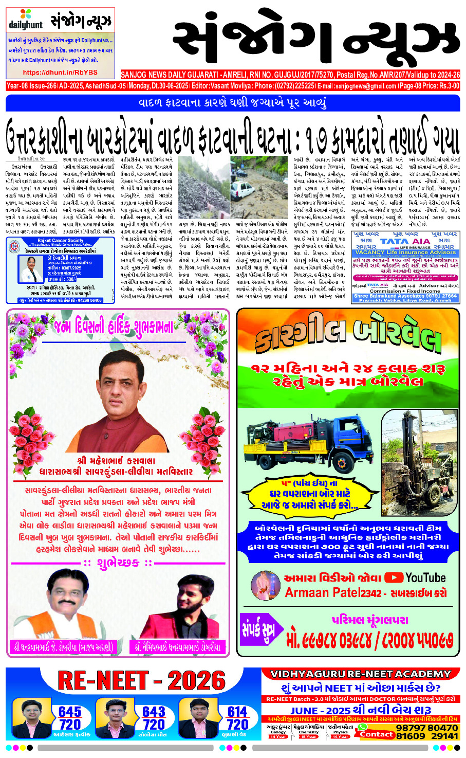 Home ઇપેપેર E- PAPER 30-06-2025 ઇપેપેર E- PAPER 30-06-2025 By Sanjog News - 30/06/2025 RELATED ARTICLESMORE FROM AUTHOR E- PAPER 16-03-2026 E-paper 15-03-2026 E-paper 14-03-2026 કૃતિકા કામરા અને ગૌરવ કપૂરના લગ્નમાં વિરેન્દ્ર સેહવાગ અને યુવરાજ સિંહે જારદાર ડાન્સ કર્યો E- PAPER 13-03-2026 E-paper 12-03-2026 E-paper 11-03-2026 E-Paper 09-03-2026 E- PAPER 08-03-2026 E- PAPER 07-03-2026 E – PAPER 06-03-2026 E-paper 04-03-2026 અમેરિકન સૈન્યએ ઈરાની વિમાનો પરના હુમલાનો વીડિયો બહાર પાડ્યો 12/03/2026 રાહુલ ગાંધી નકલી ગાંધી પરિવારમાંથી લોકસભામાં વિપક્ષના છેલ્લા નેતા અને રાજા... 10/03/2026 બનાસકાંઠાઃ દાંતીવાડા–સીપુ ડેમ લિંક પ્રોજેક્ટને રુ.૧૧૯ કરોડની મંજૂરી 14/03/2026 પુલવામા હુમલાના માસ્ટરમાઇન્ડ અને એક પાકિસ્તાની સાર્જન્ટના નકલી ઓળખ કાર્ડ મળી... 10/03/2026 રશિયા પાસેથી તેલ ખરીદવાની મંજૂરી આપતું અમેરિકાનું નિવેદન ભારતનું અપમાન; કોંગ્રેસ 11/03/2026 અમરેલી જિલ્લામાં આરોગ્ય કેન્દ્ર માટે સરકારી જમીન ફાળવવા બે વર્ષમાં ૨૭... 15/03/2026 દેશમાં ખાતરની કોઈ અછત નથી,૨૦૨૫ ની સરખામણીમાં ડીએપી ભંડાર બમણો છે. 15/03/2026 સા.કુંડલાના ગાધકડા ગામે હાઈસ્કૂલમાં ગ્રાહક સુરક્ષા અધિકાર દિનની ઉજવણી 15/03/2026 ઈશાન કિશન મોટી છલાંગ લગાવે છે, અભિષેક શર્મા ખતરામાં, સંજુ સેમસન... 11/03/2026 આચાર્ય દેવવ્રતની ઉપસ્થિતિમાં સૌરાષ્ટ્રપટેલ સેવા સમાજ દ્વારા ‘થર્સ ડે થોટ્સ’ના ૧૫૦મા... 13/03/2026